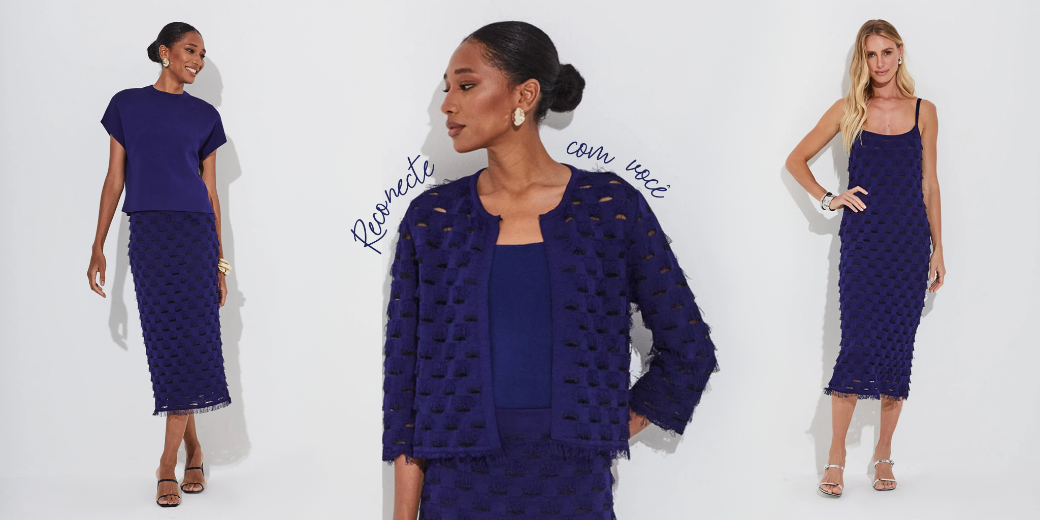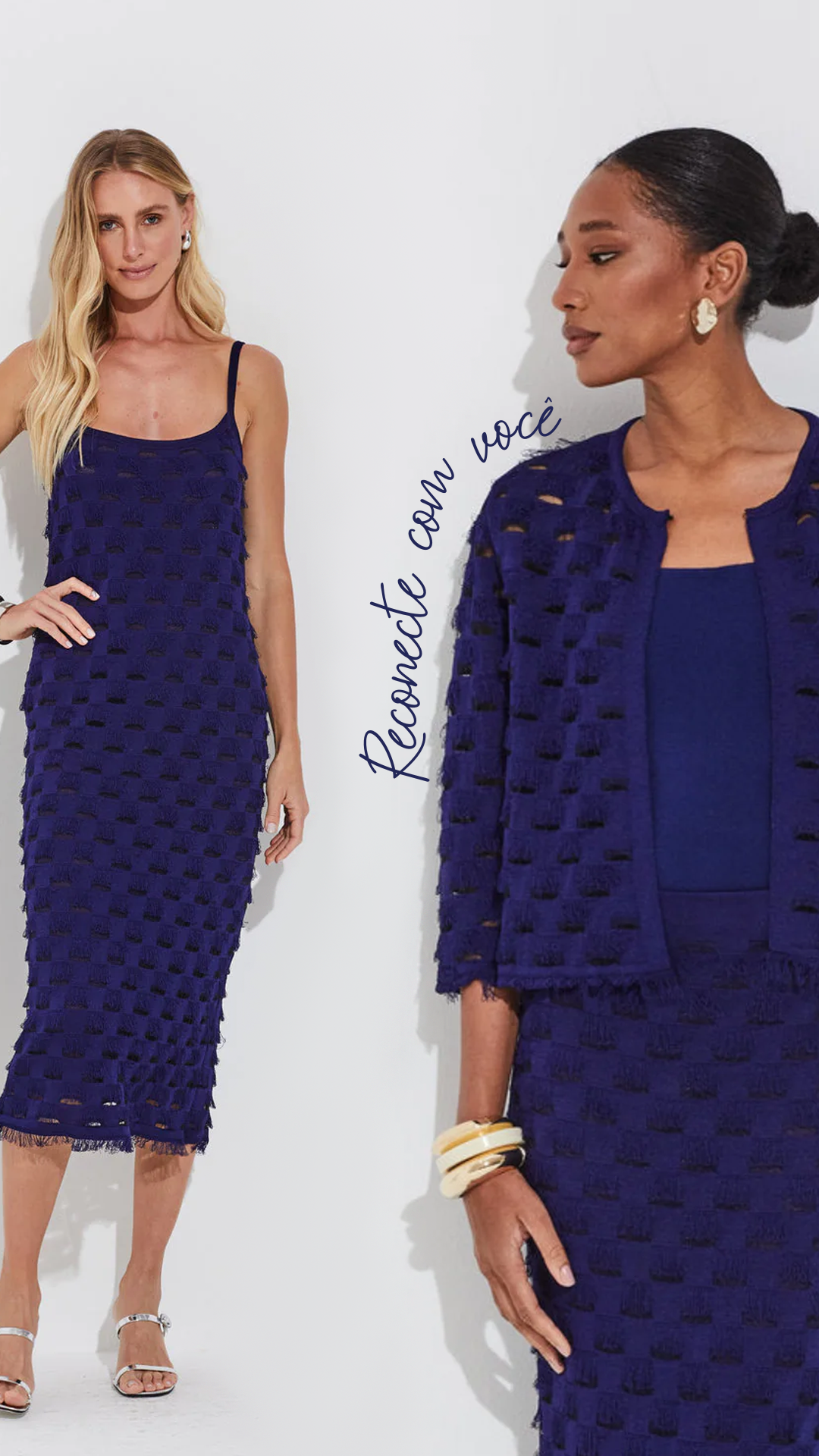 Vestido Com Mangas Crepe Premium Em Viscose Mistic Blue
