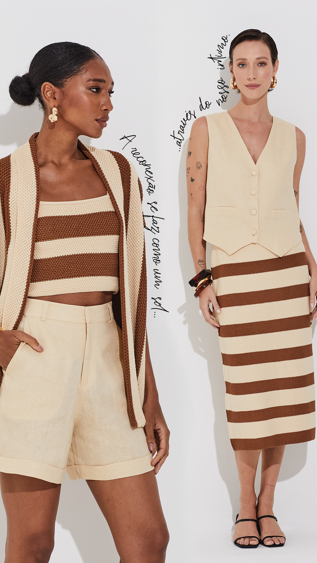 Saia Em Mix De Malhas Longa Com Recortes Mix Bicolor Ambar Terroso
