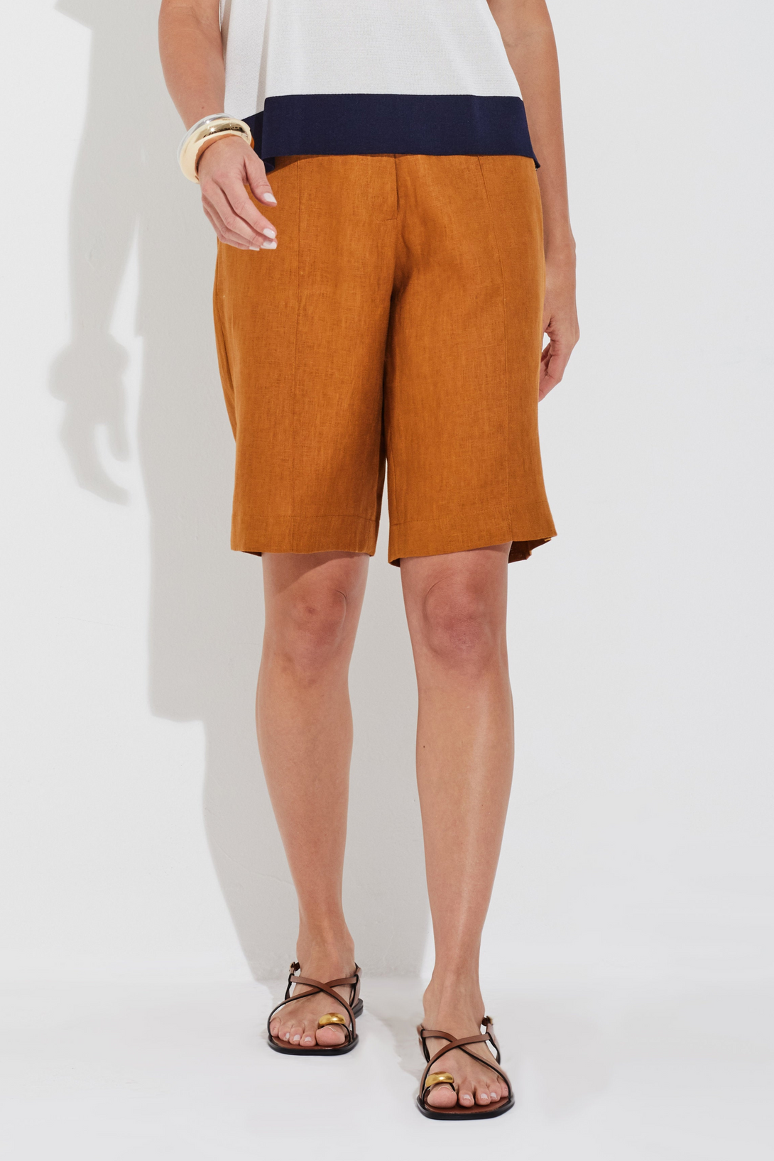 OUTRAS CORES:: Bermuda Linho Puro Naturale Ambar Terroso