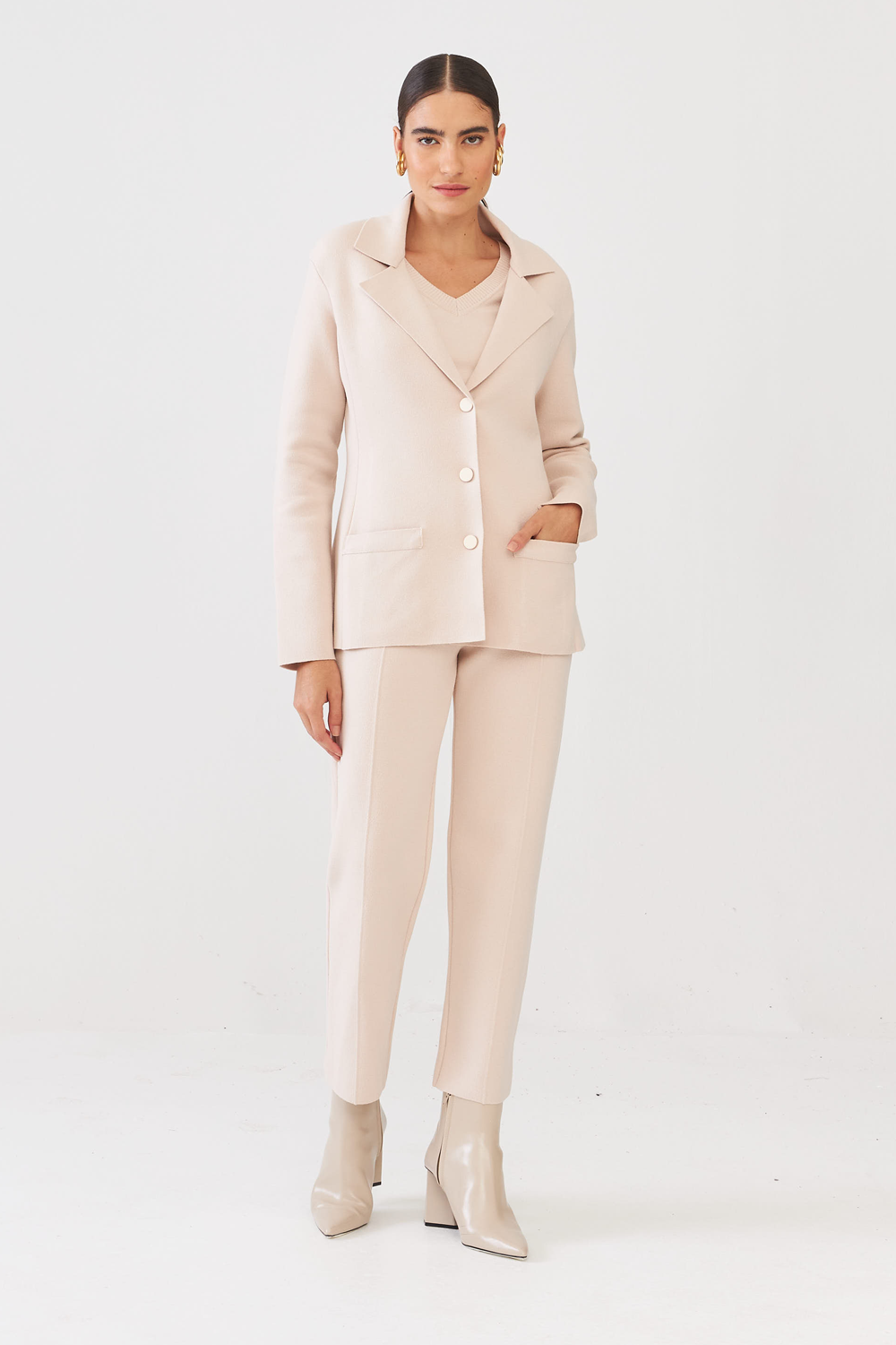 Blazer Estruturado Em Tricot Strech Com Bolsos Tapioca