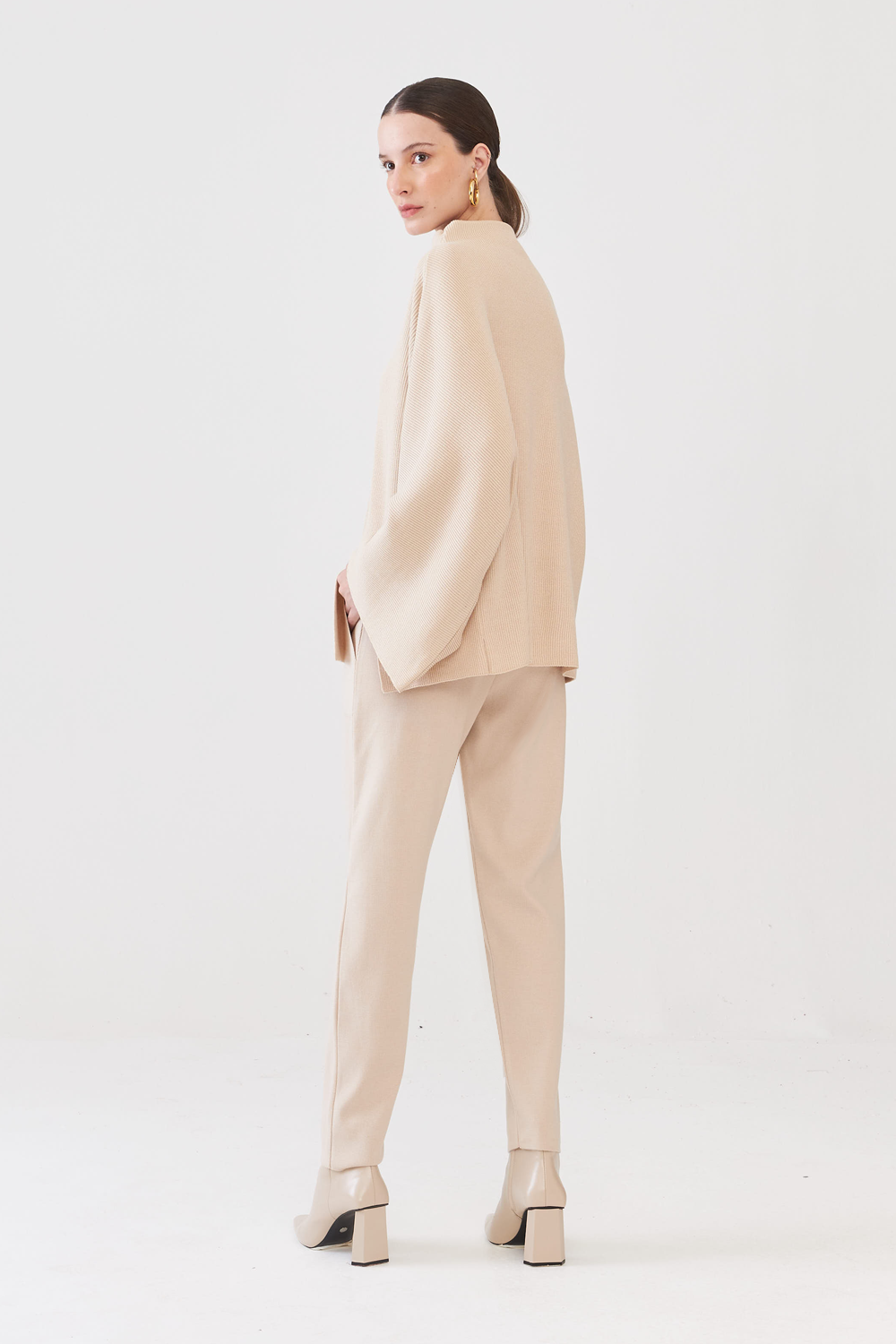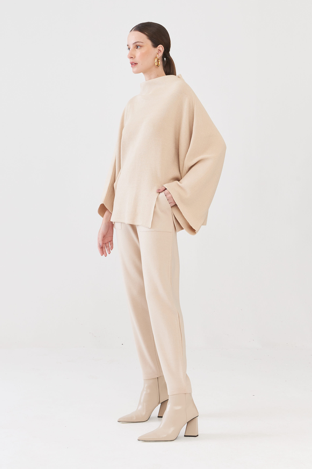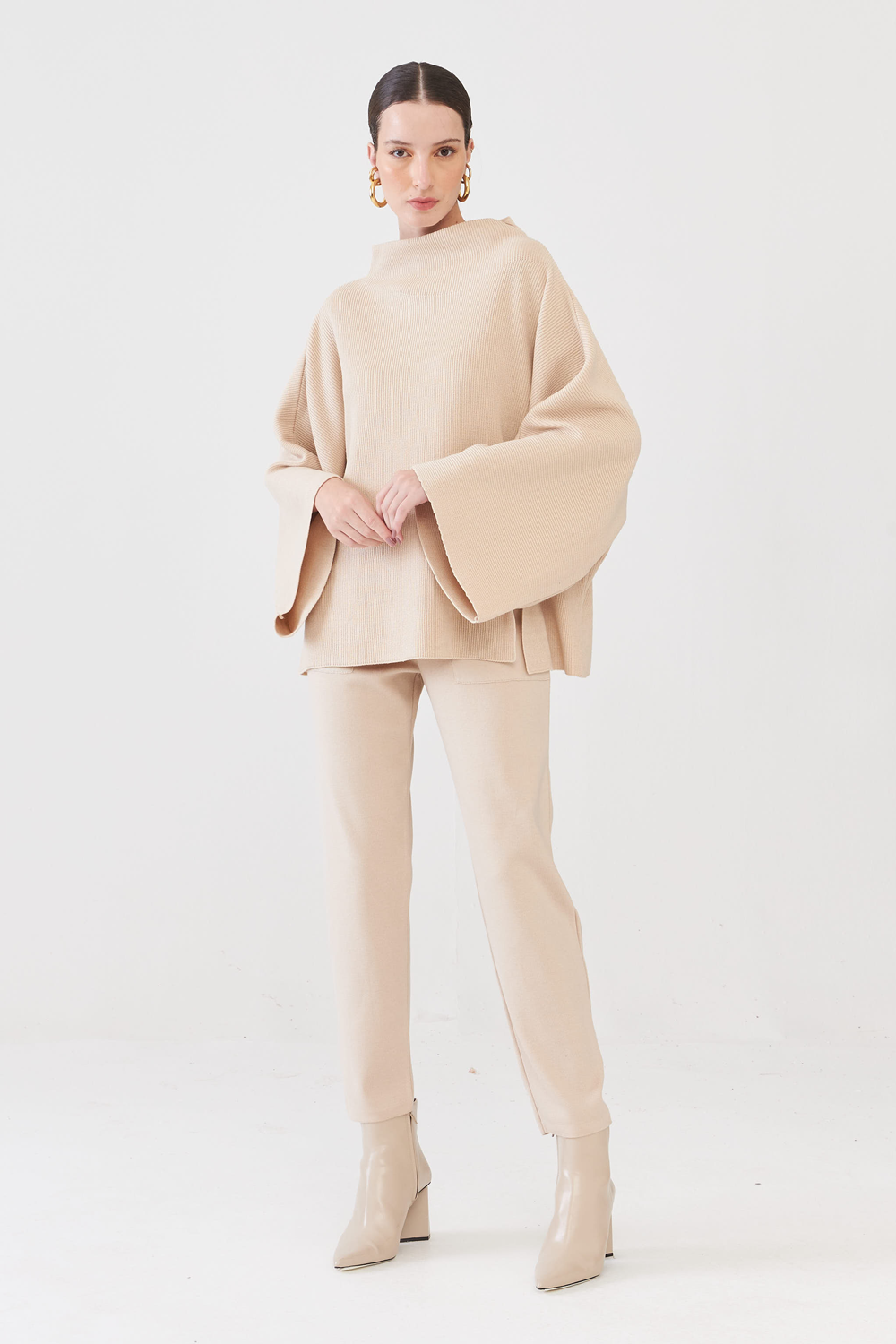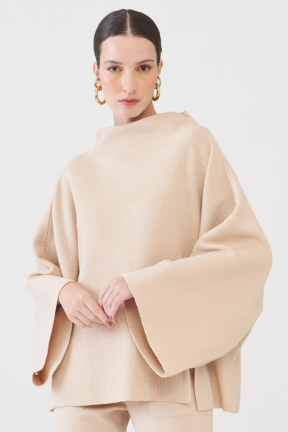 Blusa Ampla Com Fenda Em Tricot Canelado