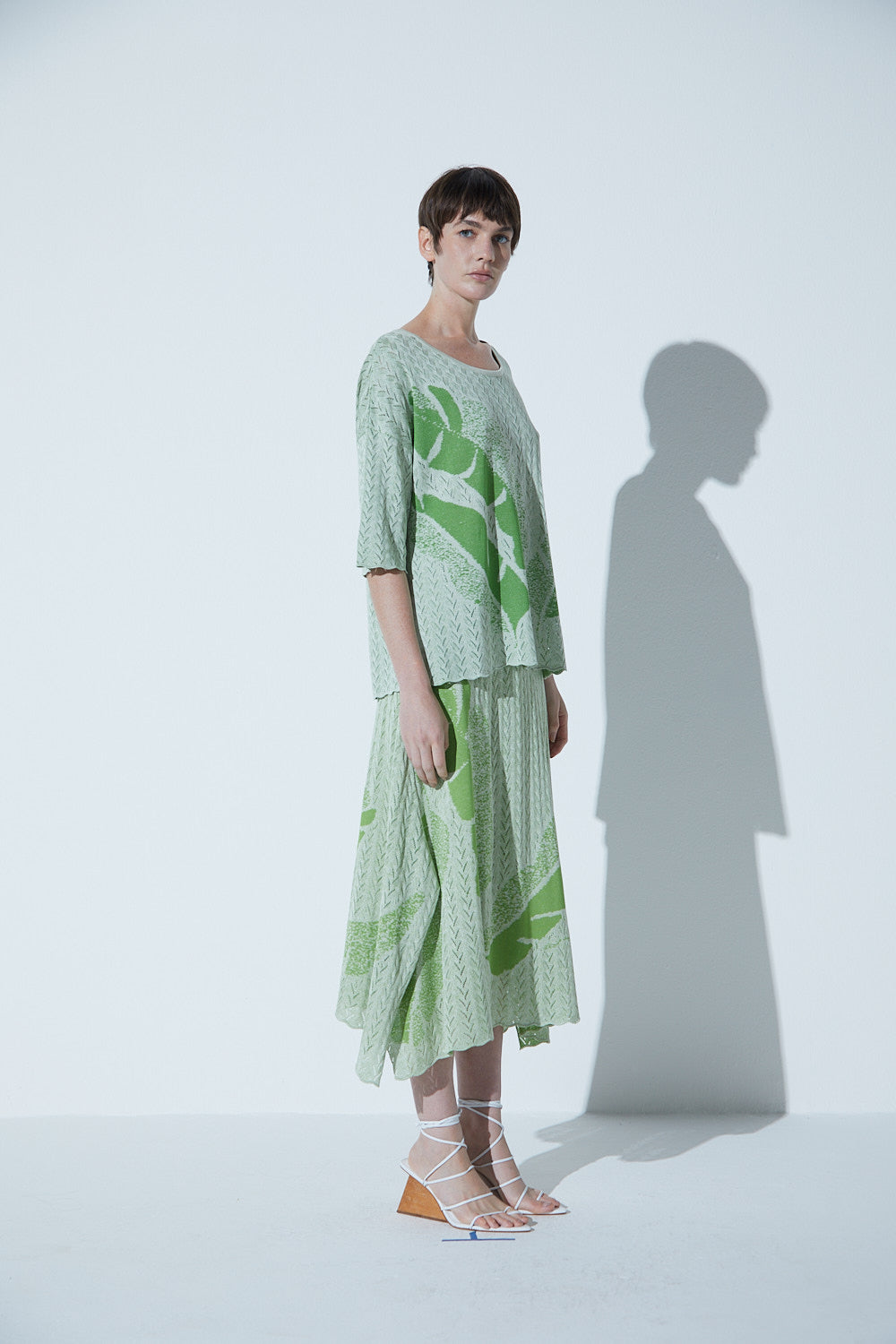 A blusa Ampla Em Tricot Jacquard Folhas é confeccionada em tricot com técnica jacquard, fornecendo ao tecido uma estética única com leve toque de brilho. Além disso, a padronagem de folhas e a caimento amplo da blusa criam um look elegante e versátil. Aposte!