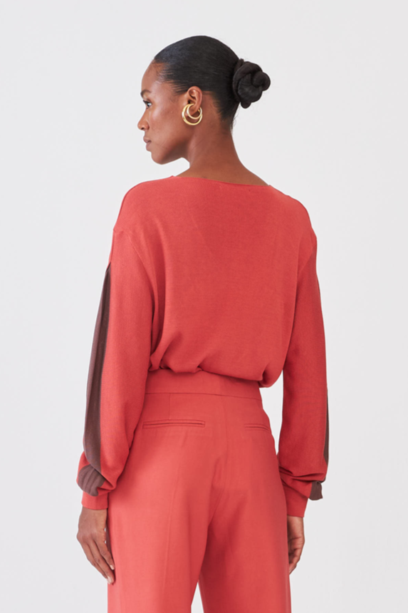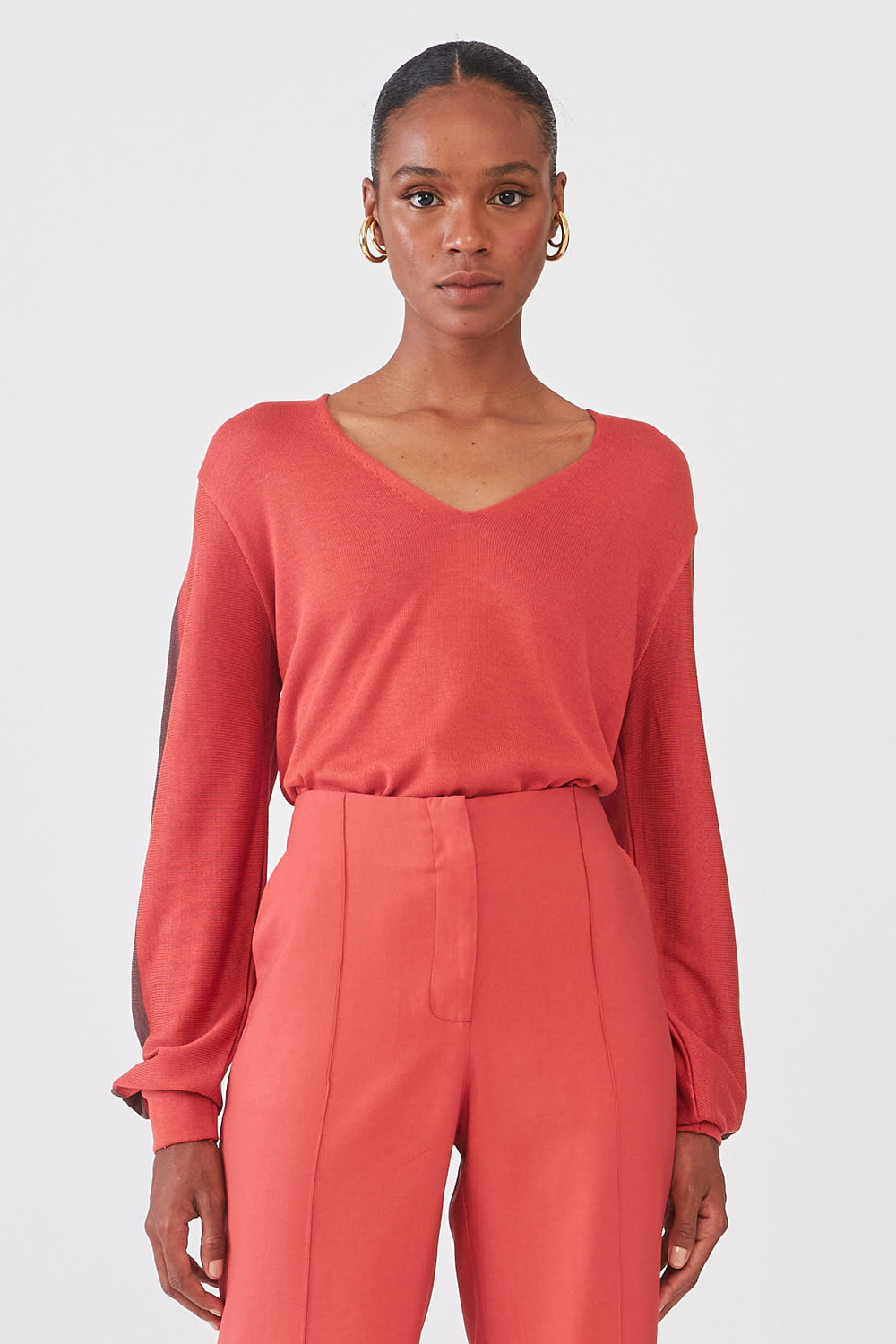 Blusa Bicolor Mangas Com Pregas Em Tricot Sienna / Cacau
