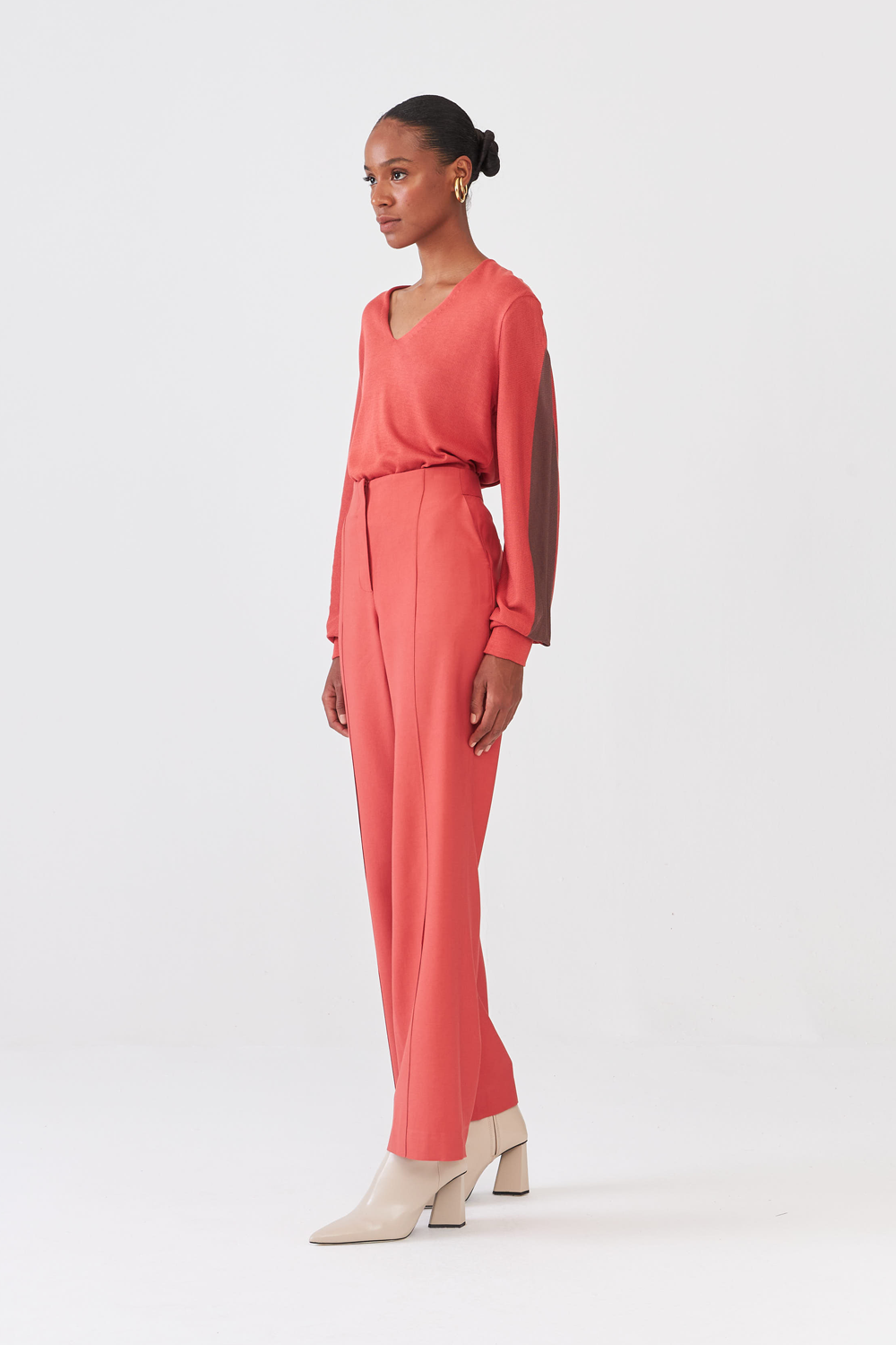 Esta blusa bicolor em tricot possui pregas elegantes, mangas compridas e um decote em V, trazendo um toque de sofisticação e praticidade no seu dia a dia. Feita com um tricot leve e confortável, é perfeita para um look easy chic. Aproveite o tom sienna e cacau para adicionar um toque de cor ao seu guarda-roupa.