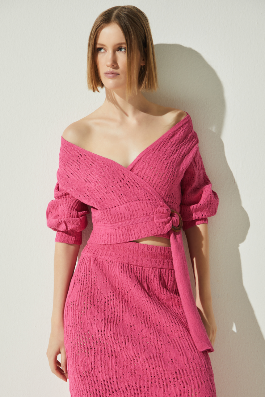 Blusa Cachequer Em Tricot Rendado Floral Cassis