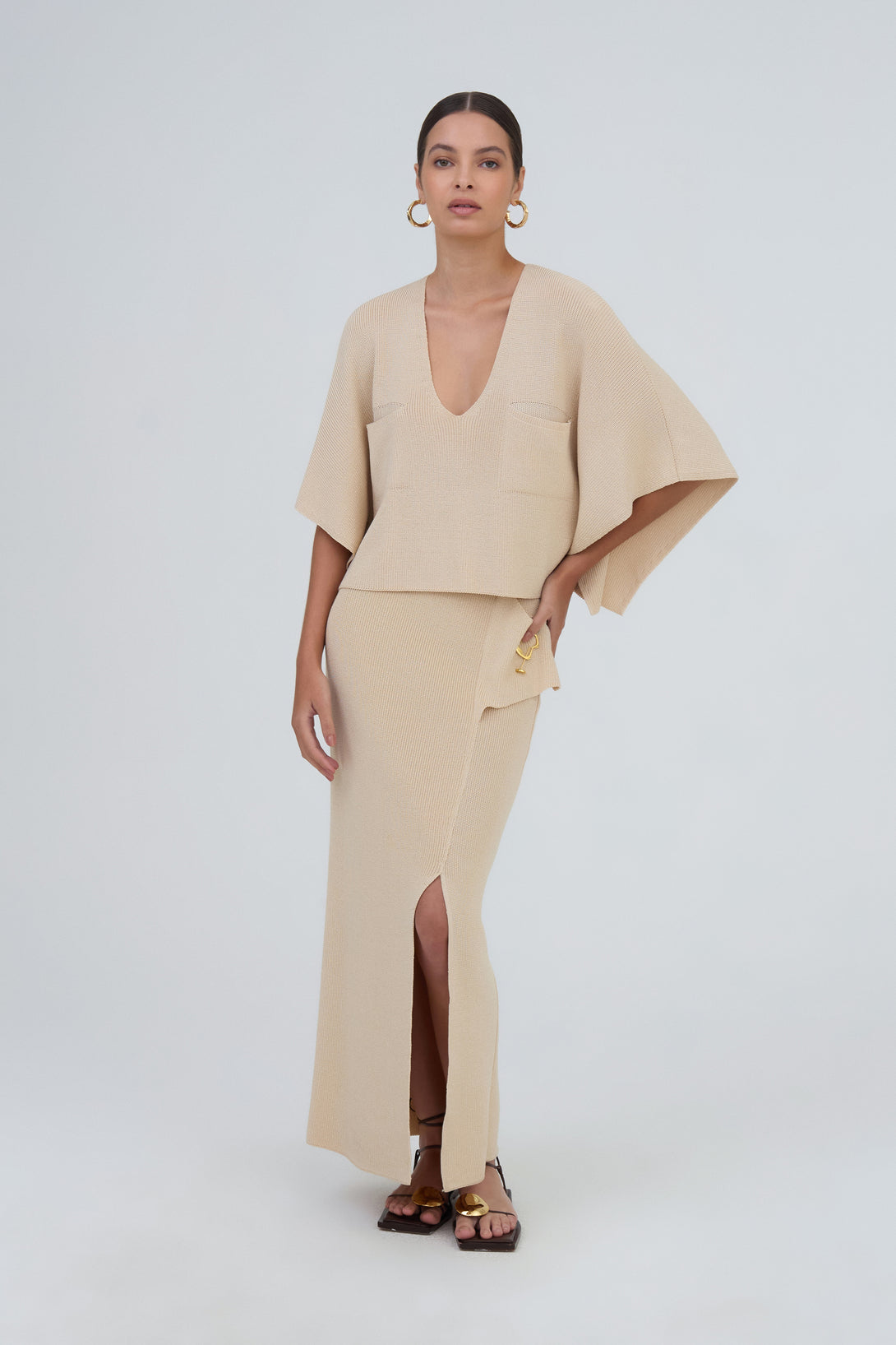 Esta blusa cropped de tricot possui decote v e mangas amplas para proporcionar um look moderno e confortável. Perfeito para ser usado em diversas ocasiões.