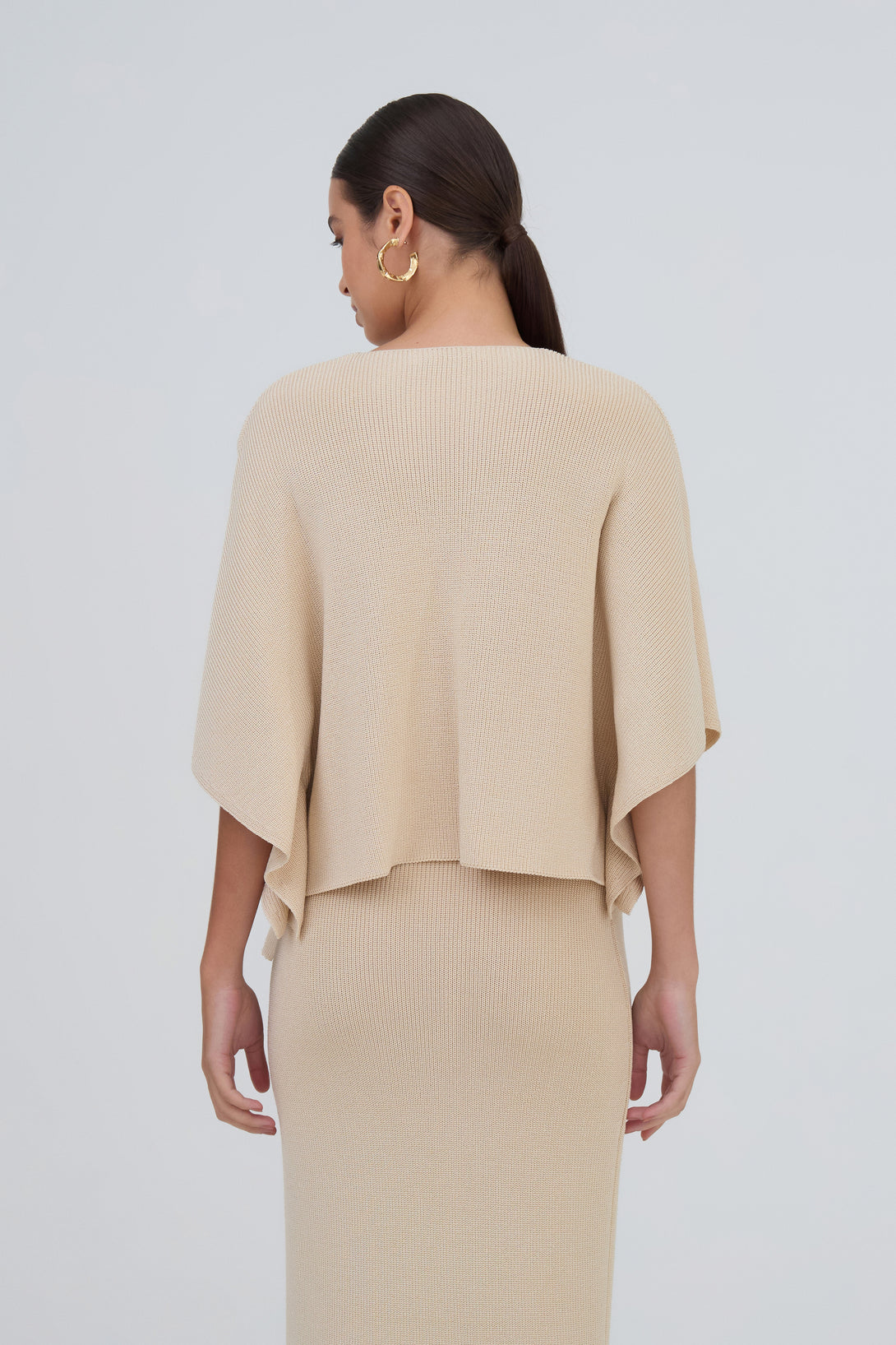 Blusa Cropped Decote V Manga Ampla Em Tricot