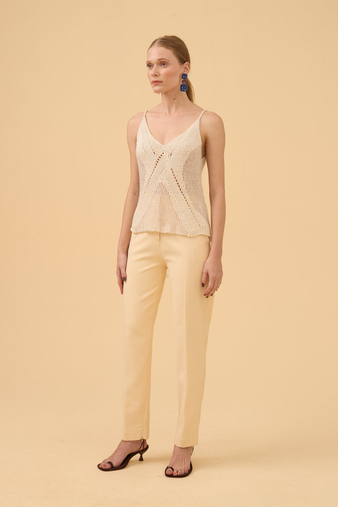 Blusa De Alças Mix De Fios Em Tricot Papiro