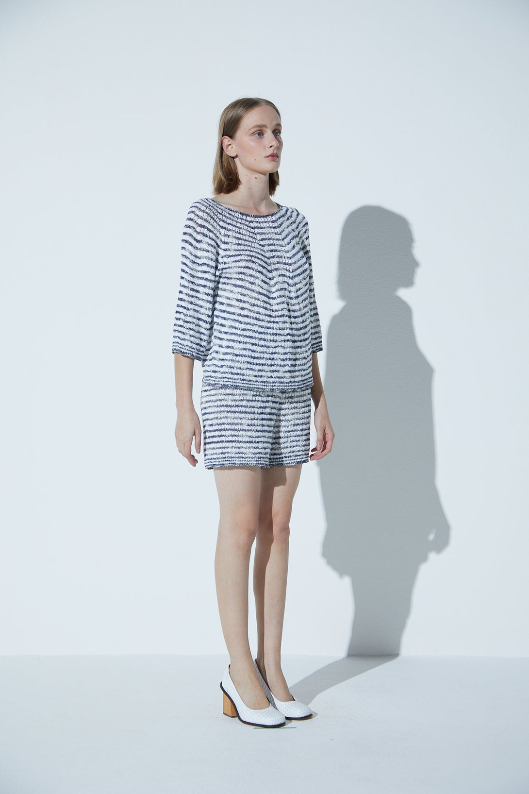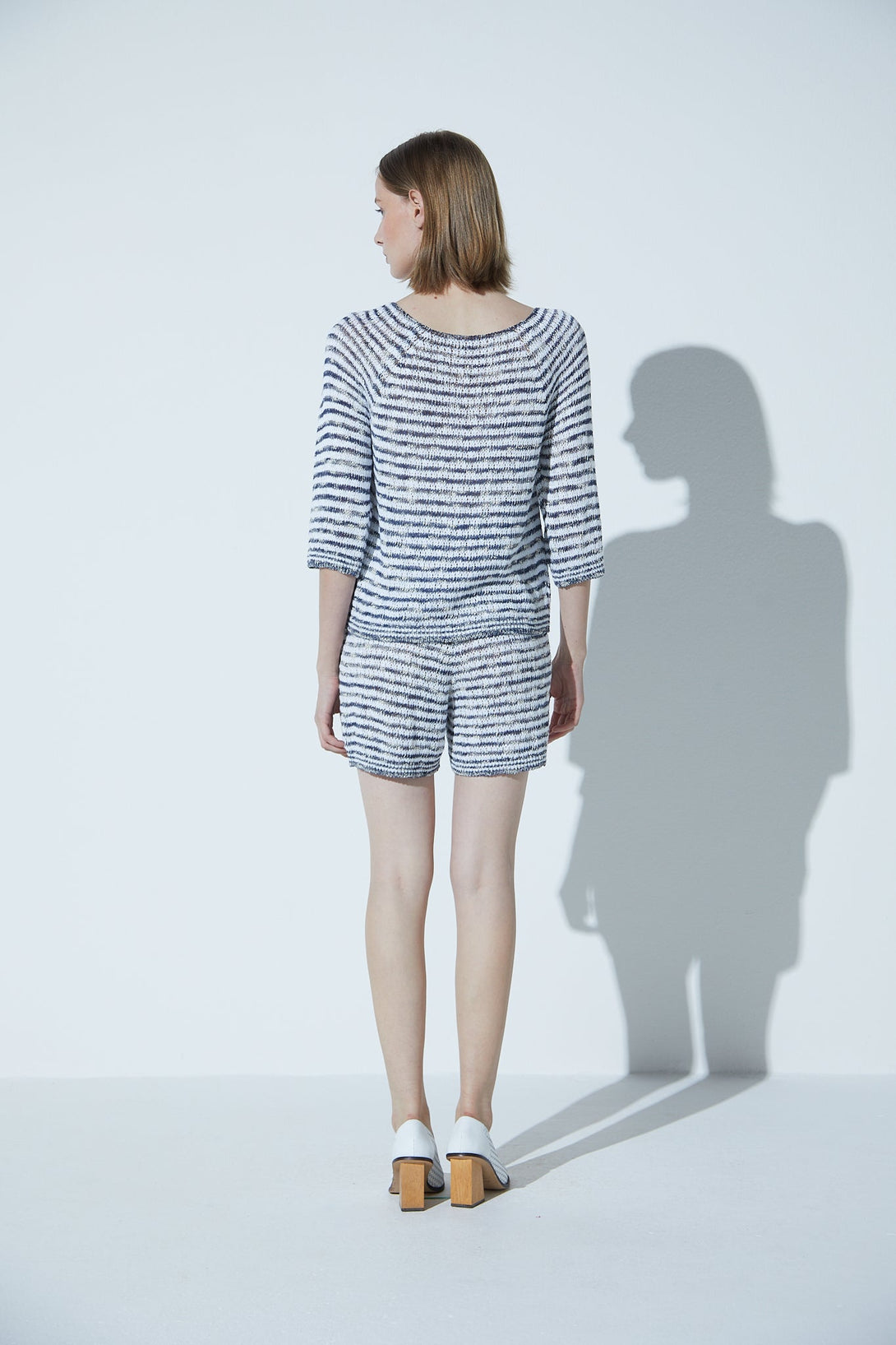 Blusa Decote Canoa Em Tricot Marinho