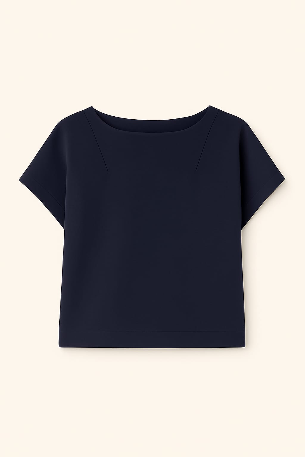 Blusa Decote Canoa Malha Montaria Navy Classico