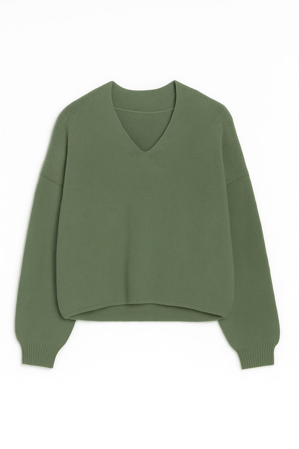 Blusa Decote Careca Manga Volume Em Tricot Alecrim