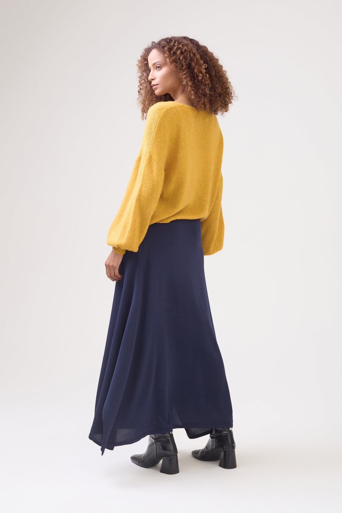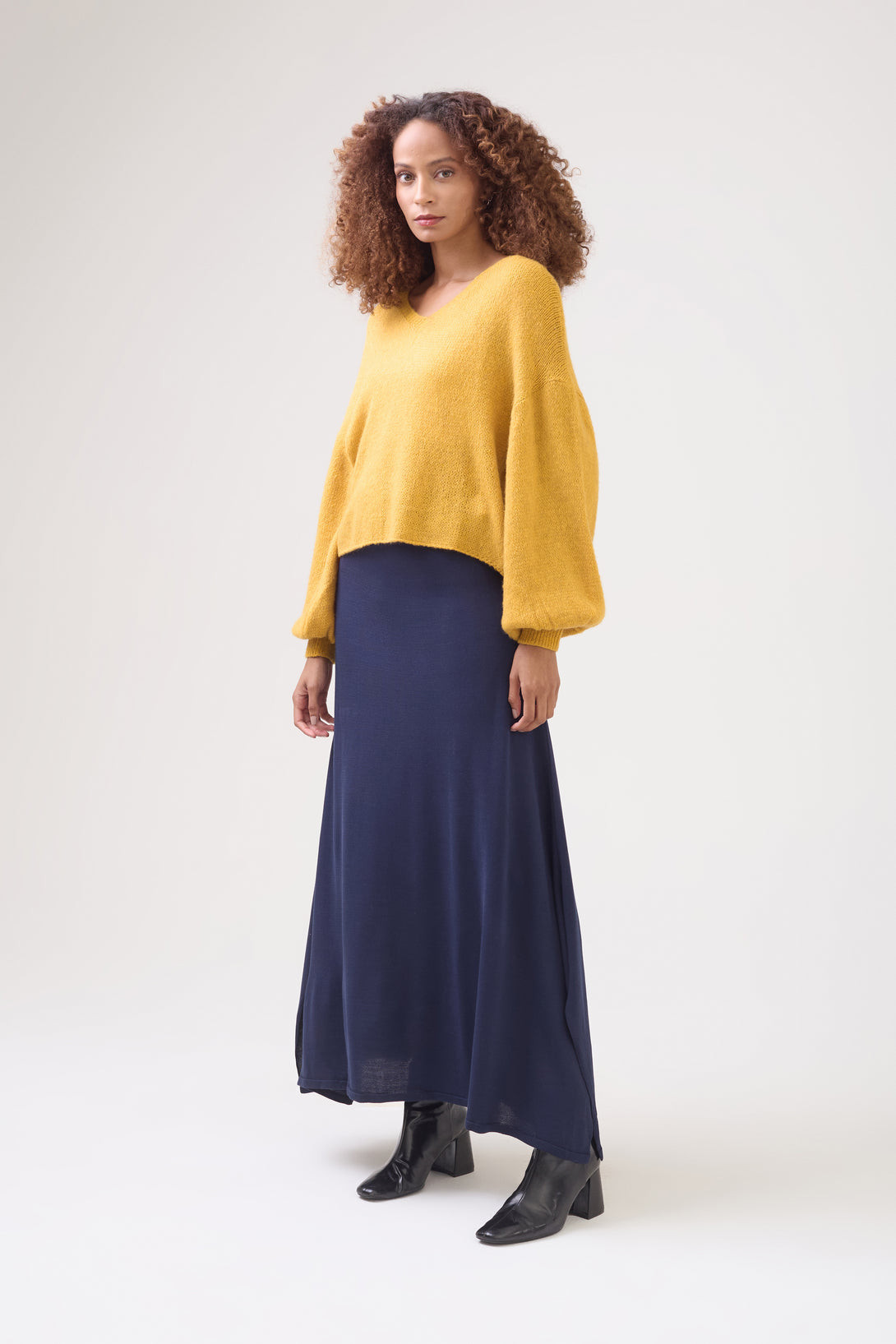 Blusa Decote Careca Manga Volume Em Tricot Citrino