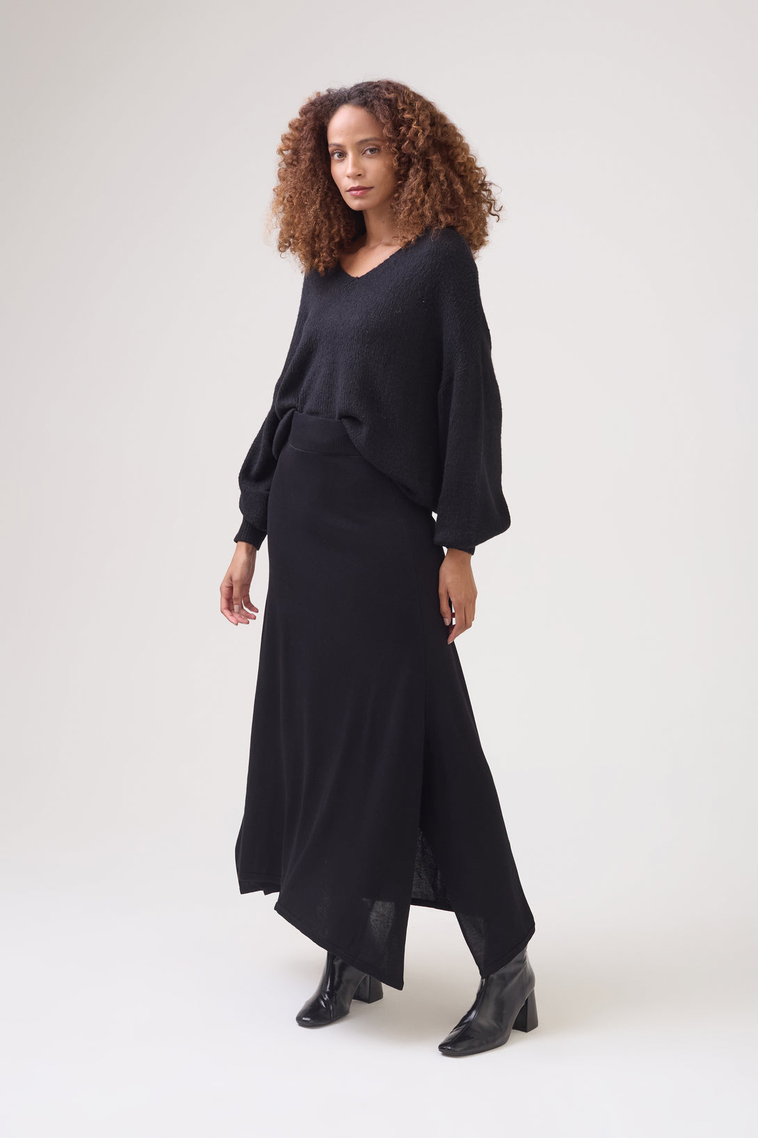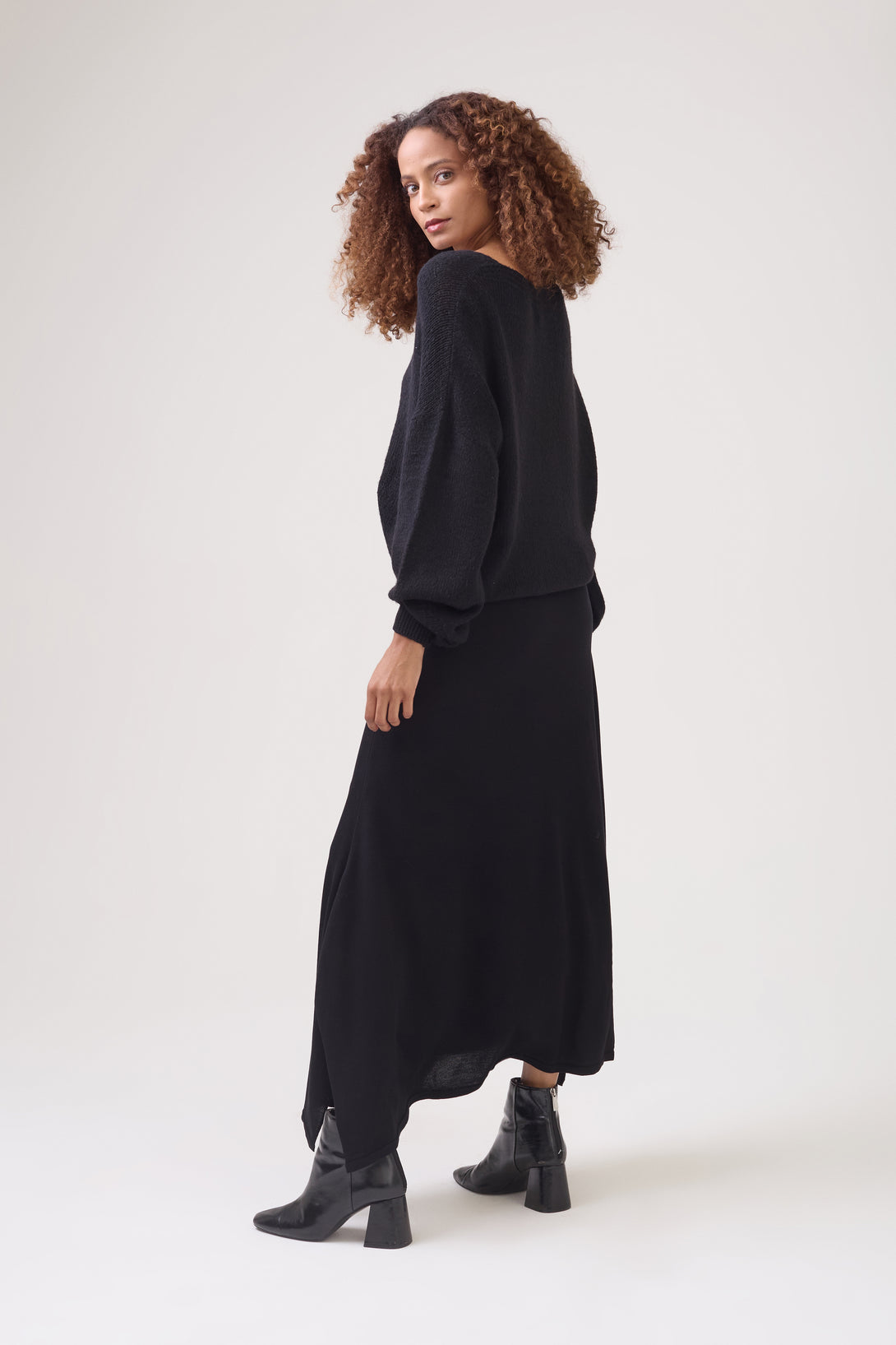 Blusa Decote Careca Manga Volume Em Tricot Preto