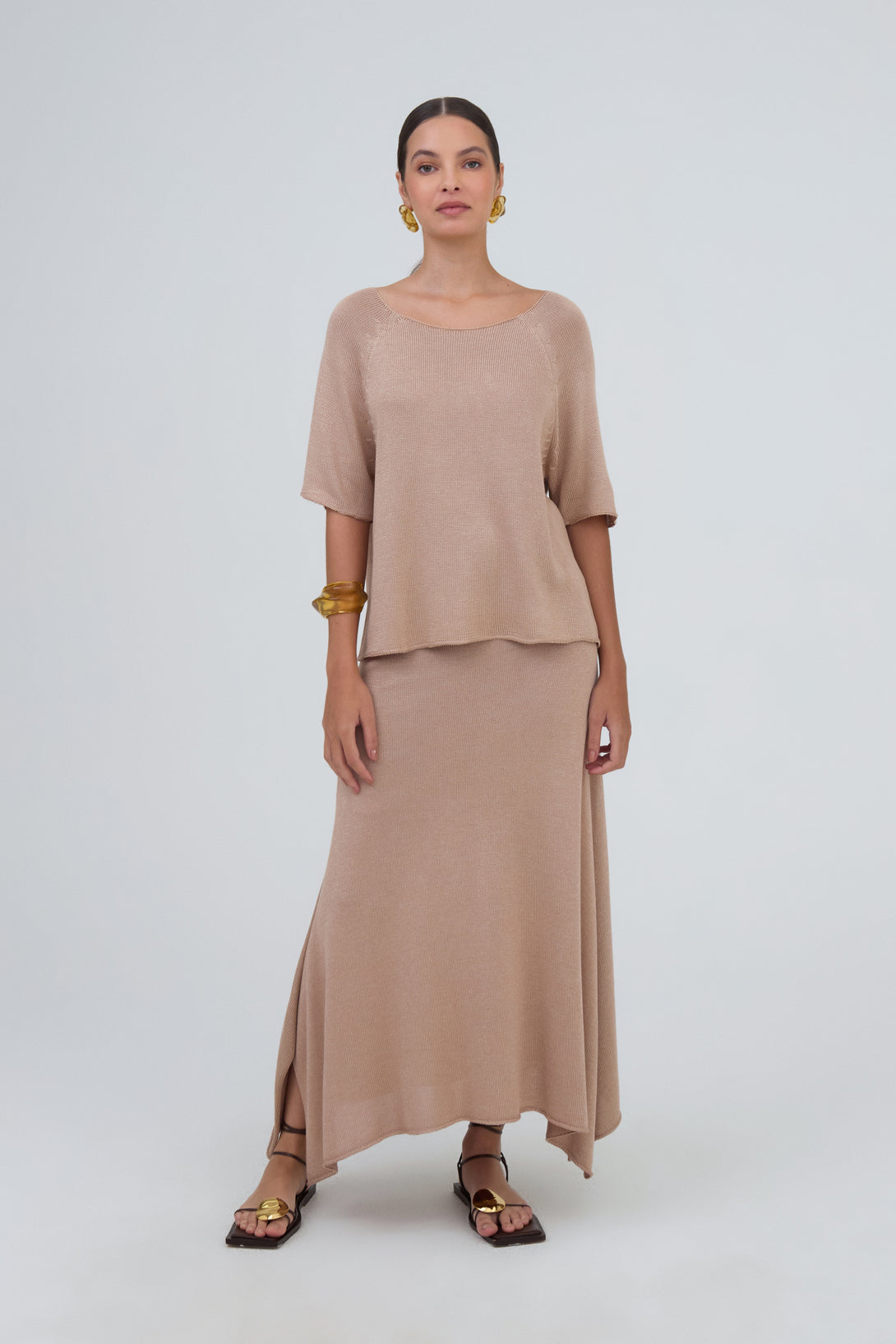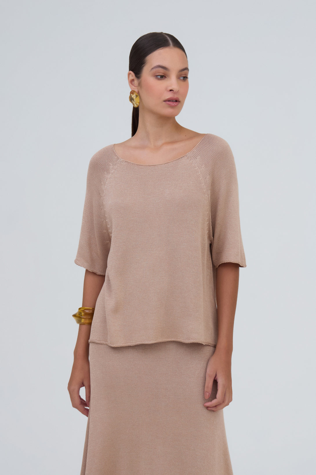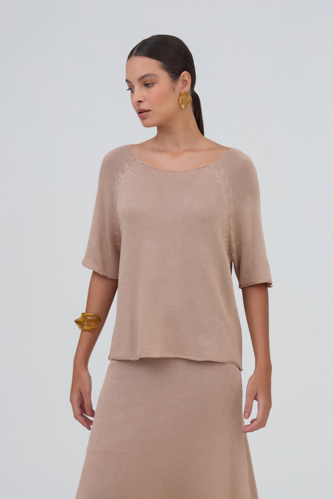 Blusa Decote U Manga Raglan Em Tricot Camel