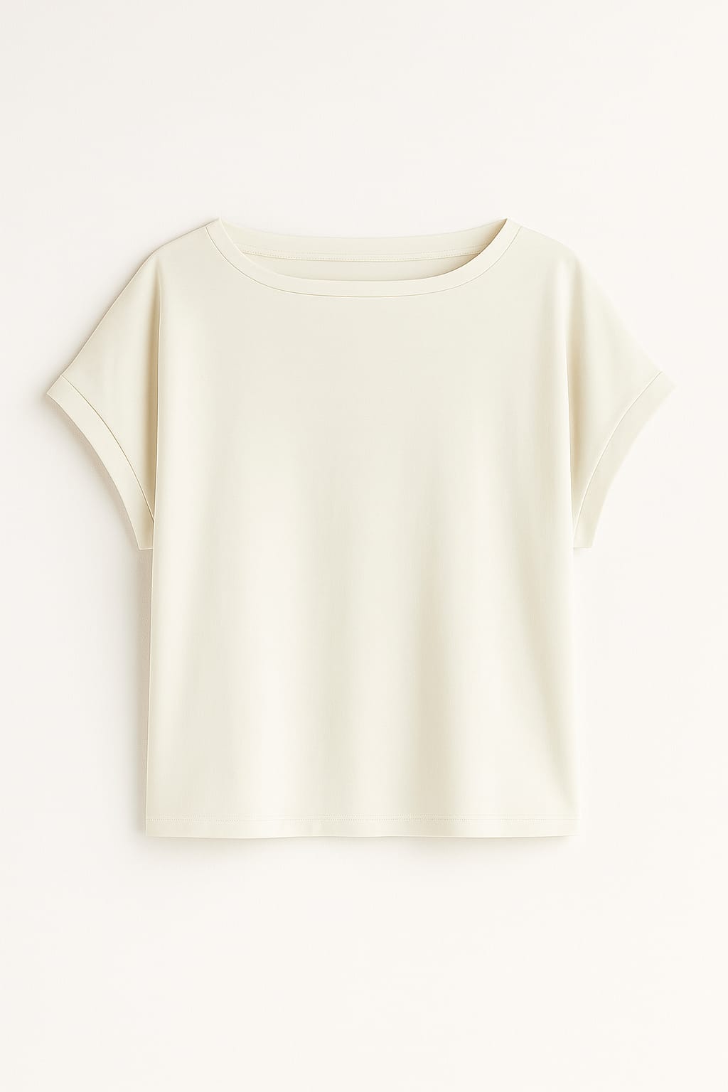 Blusa Em Crepe De Malha Com Decote Redondo Com Barra Italiana Marfim