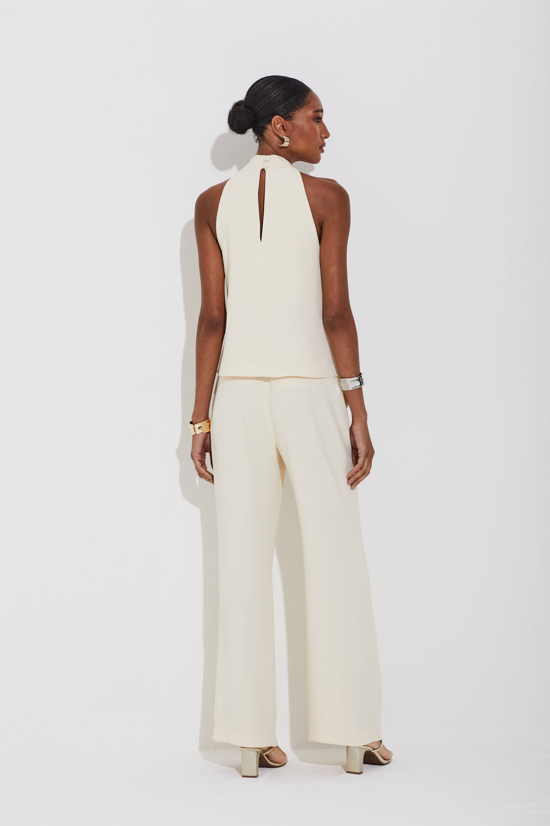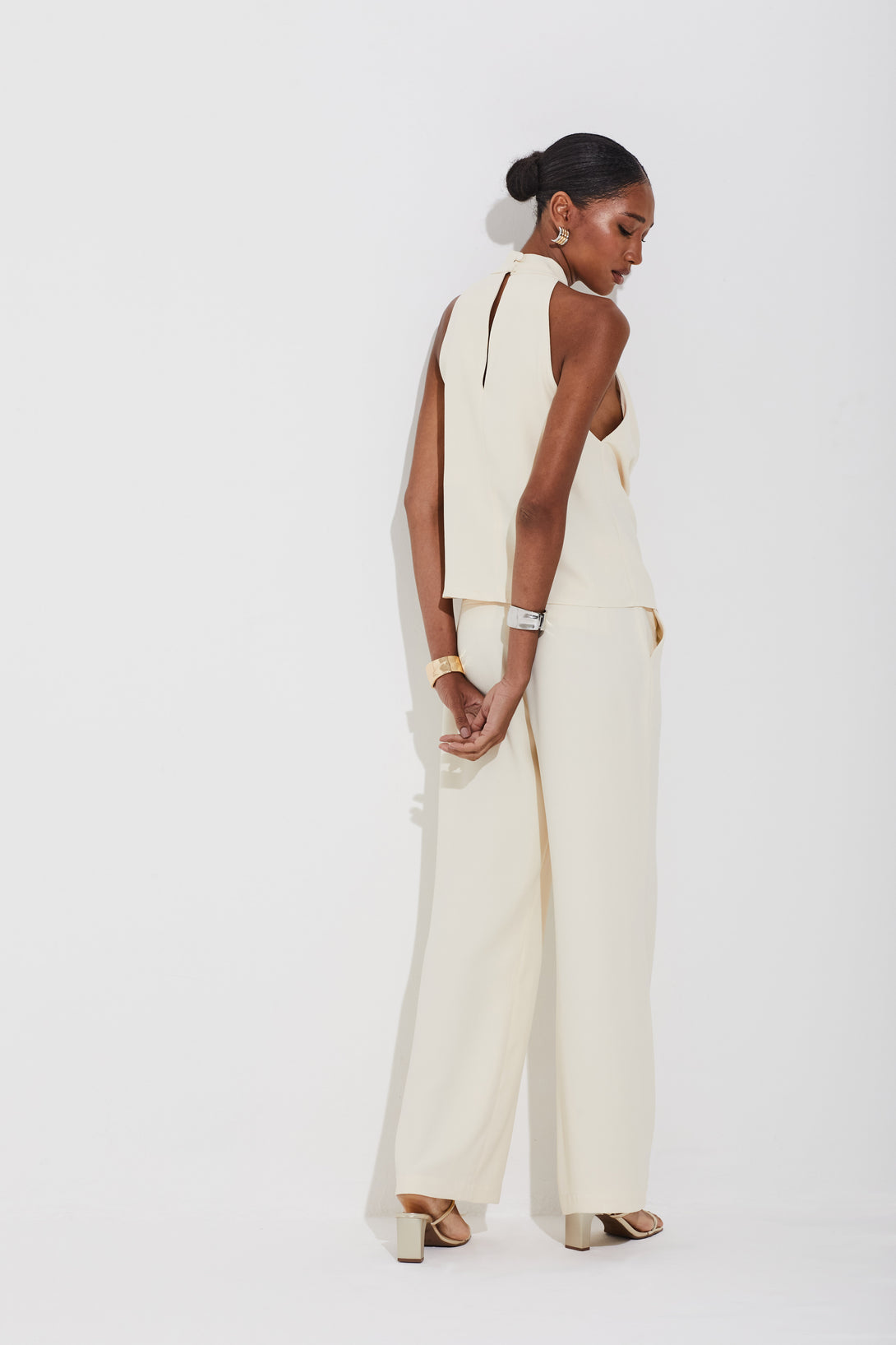 Sofisticada e fluida, a Blusa Sem Mangas em crepe Patou se destaca pelo decote degagê, que valoriza o colo com elegância sutil. O tecido tem toque suave, caimento leve e acabamento refinado. O fechamento posterior conta com botões duplos forrados, garantindo charme e praticidade. Ideal para produções contemporâneas com um toque de sofisticação atemporal.