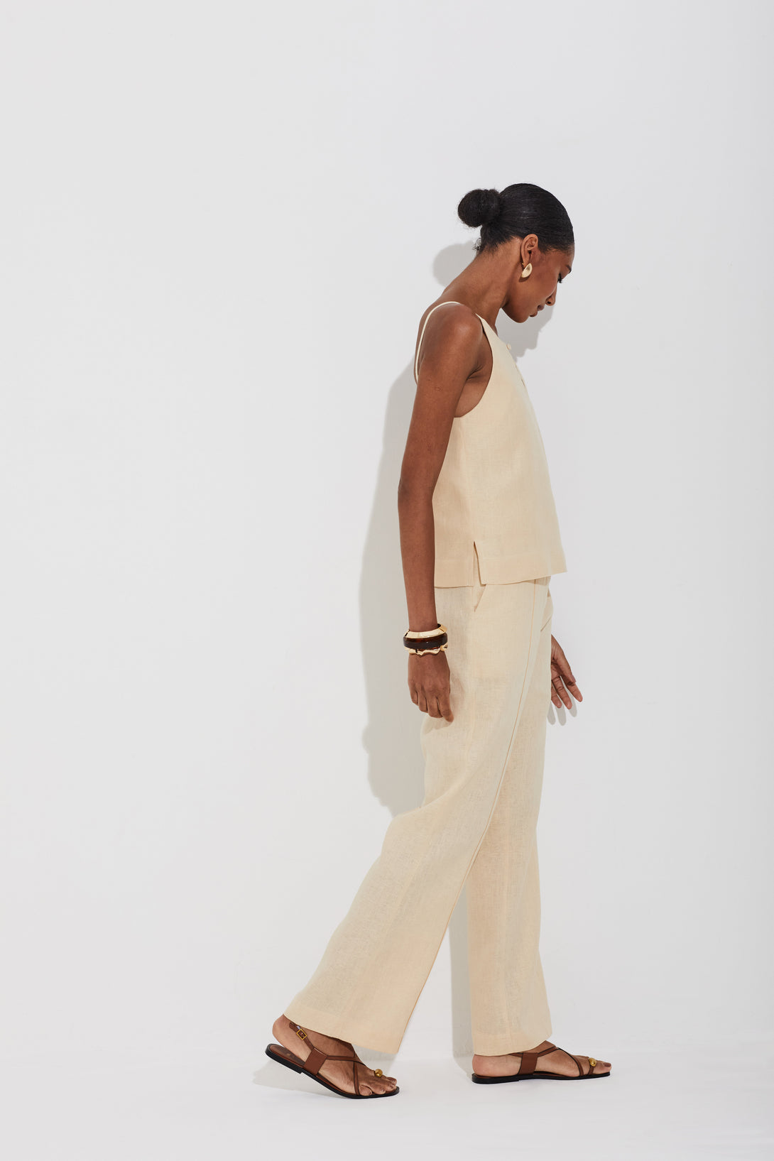 OUTRAS CORES:: Blusa Linho Puro Alças Finas Off Amanteigado