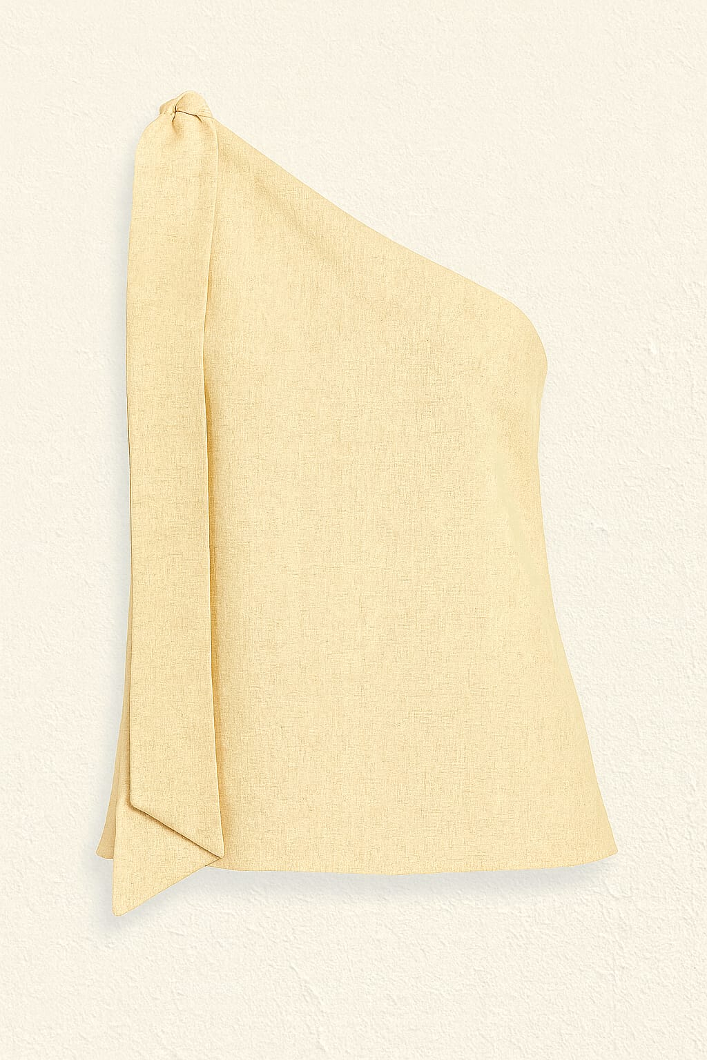 Blusa Em Linho 100% De Um Ombro Só Com Faixa Off Amanteigado