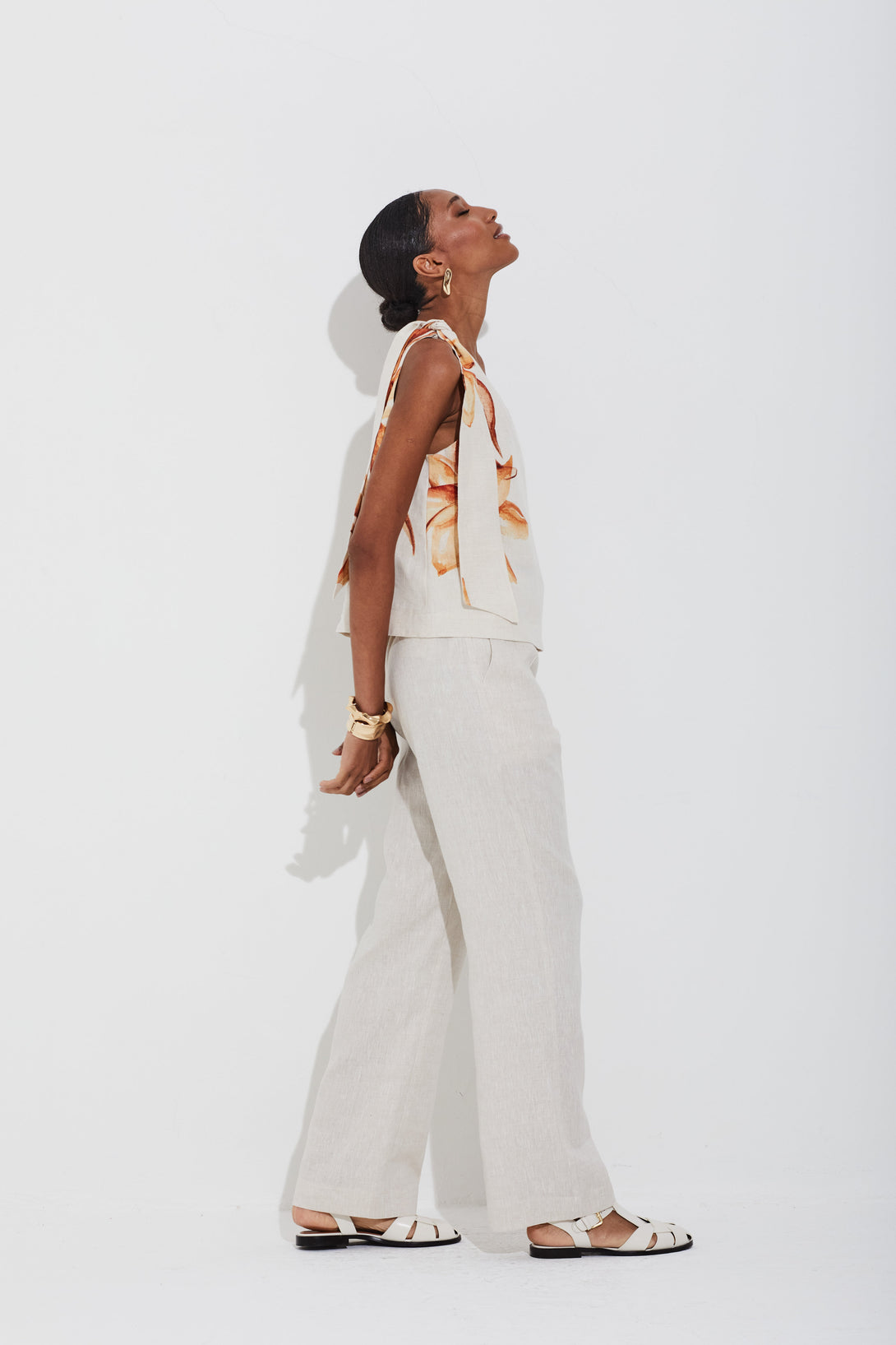 Blusa 100% linho de um ombro só, com modelagem confortável e barra levemente arredondada. A estampa Florescer adiciona delicadeza e personalidade à peça. O busto tem forro no mesmo tecido e zíper invisível na lateral, que facilita o vestir sem interferir no visual. Acompanha faixa solta, que pode ser usada amarrada na alça ou na cintura, oferecendo diferentes formas de uso.