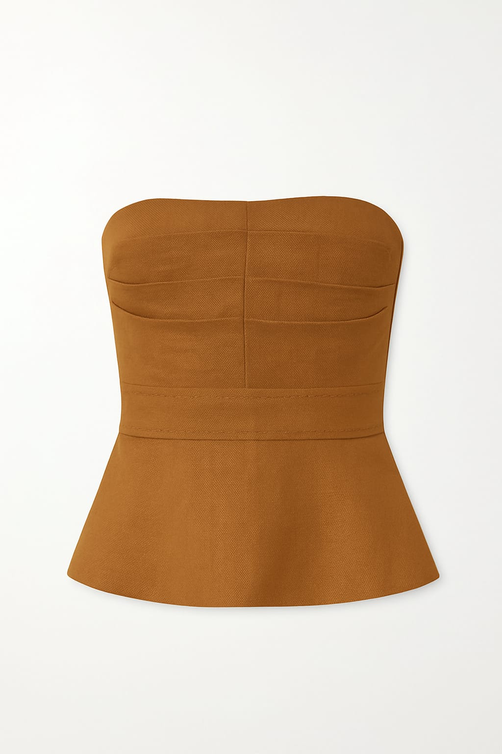 OUTRAS CORES:: Blusa Em Linho 100% Peplum Com Pregas Ambar Terroso