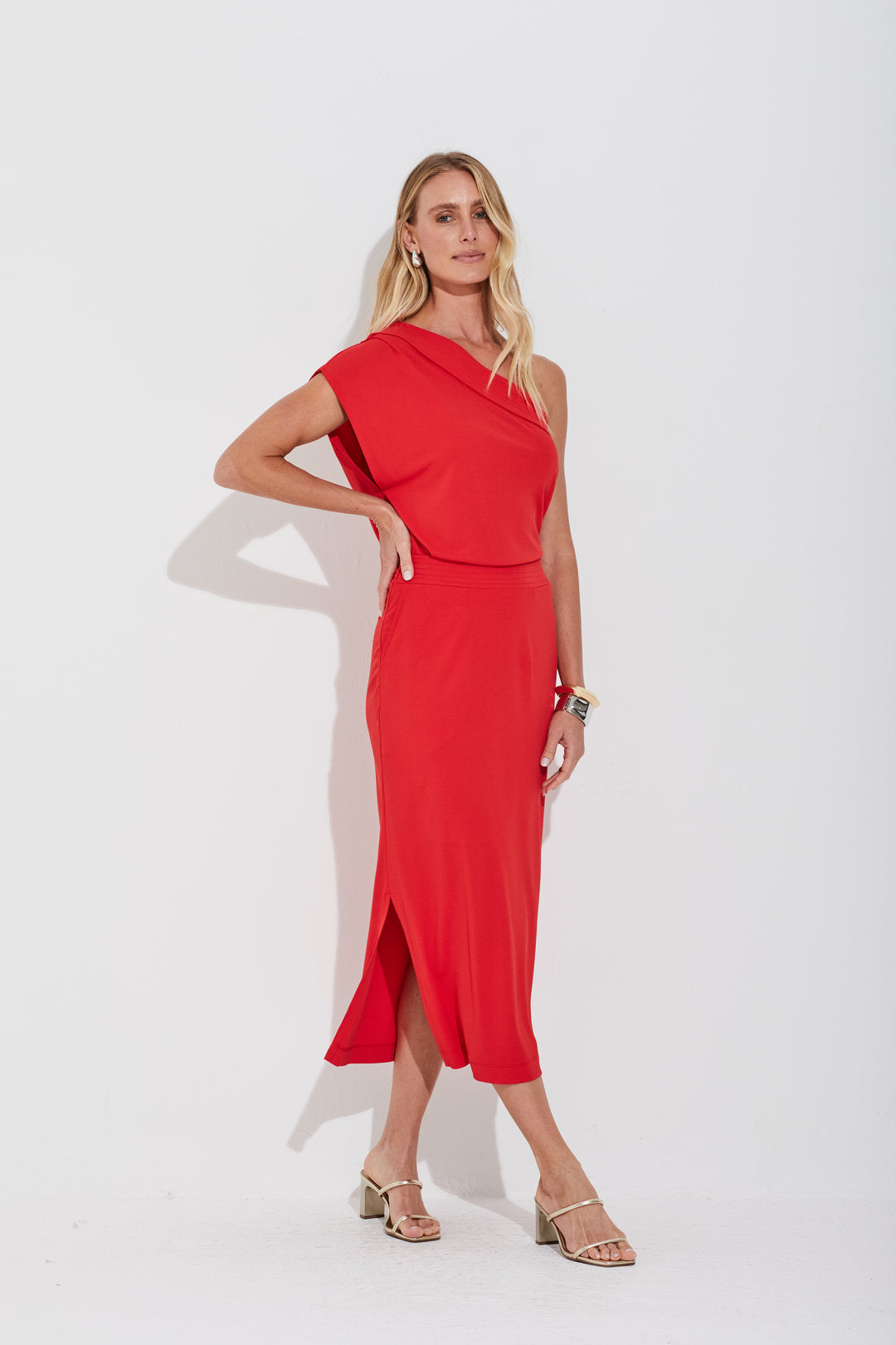Blusa Em Malha Um Ombro Só Com Pespontos Tomate