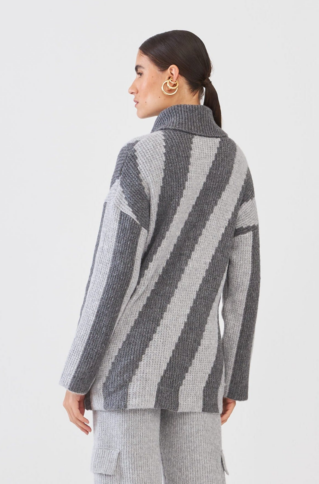 A Blusa Em Tricot Listras Diagonais é feita em um tricot macio e confortável, com um design moderno de listras diagonais. Experimente combiná-la com diferentes peças para um visual versátil e sofisticado.