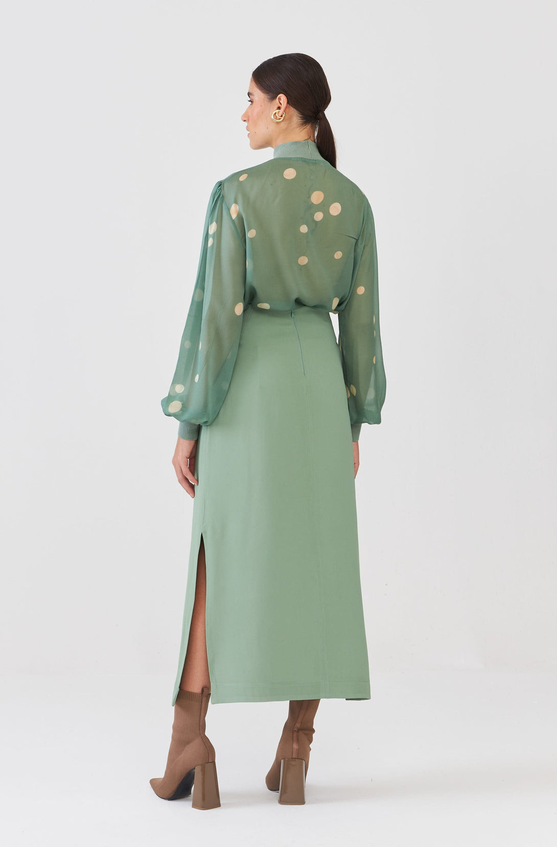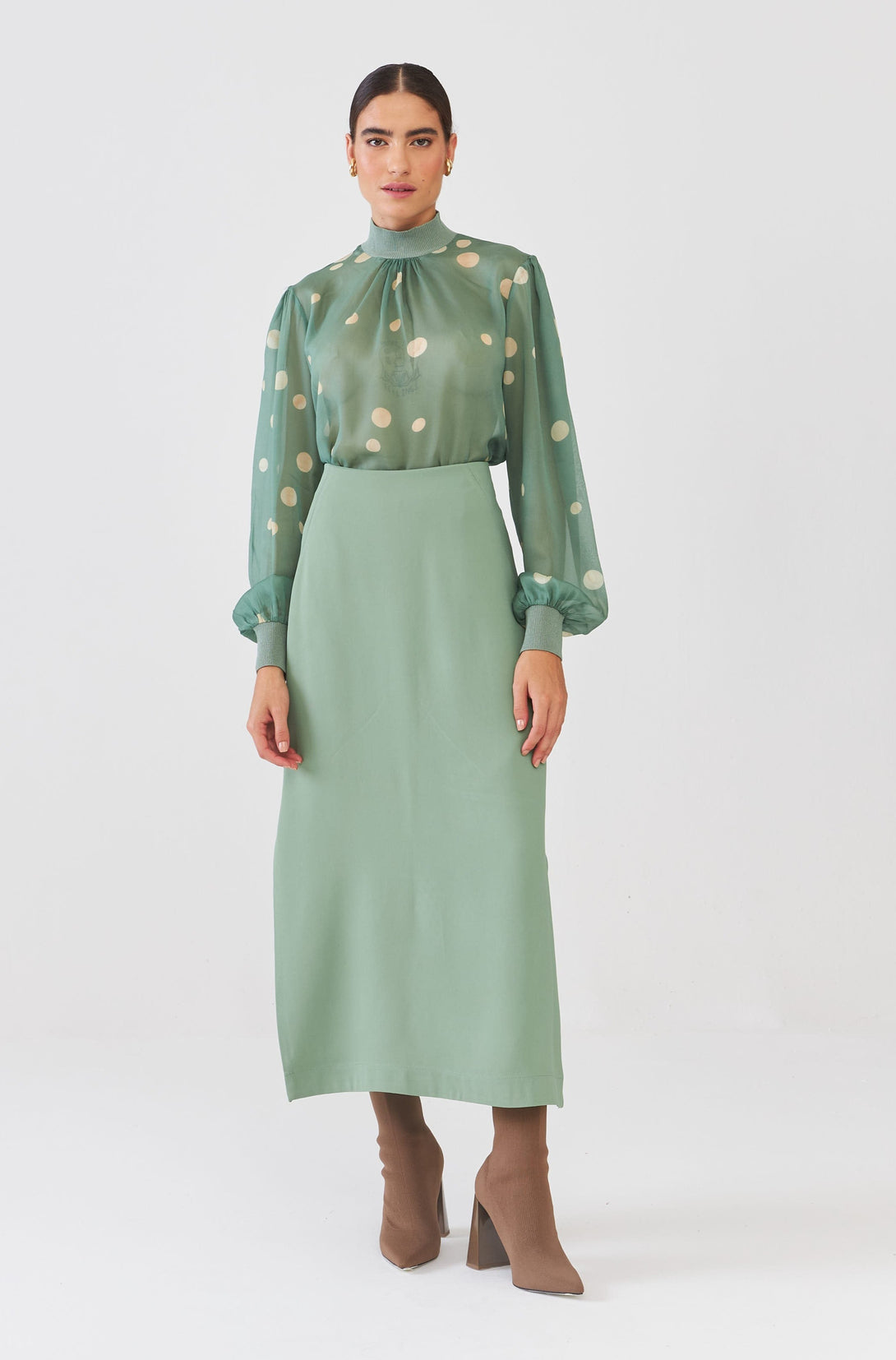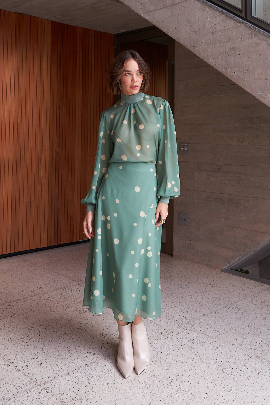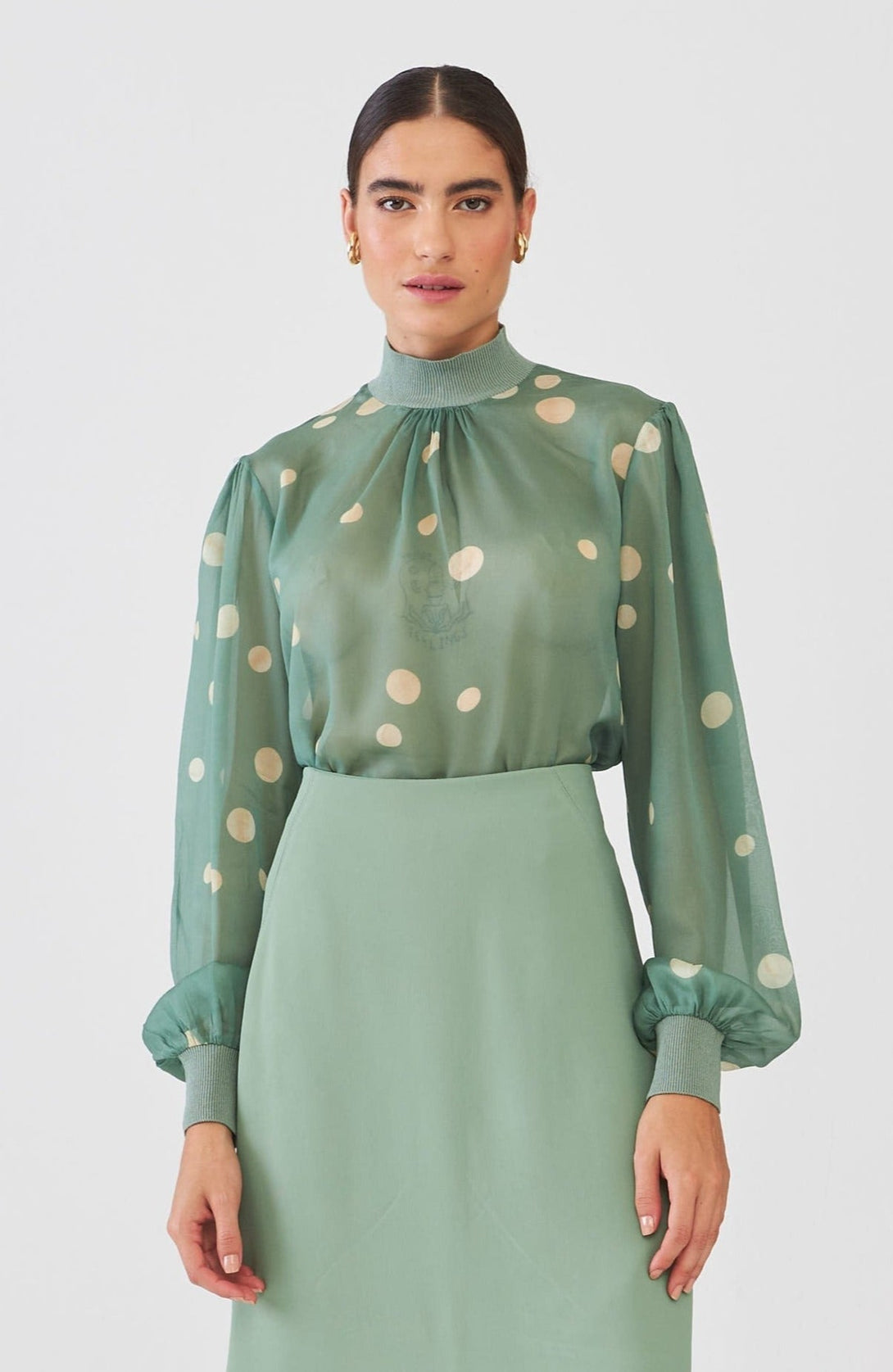 Blusa Estampada Manga Longa Transparência Poa Alecrim