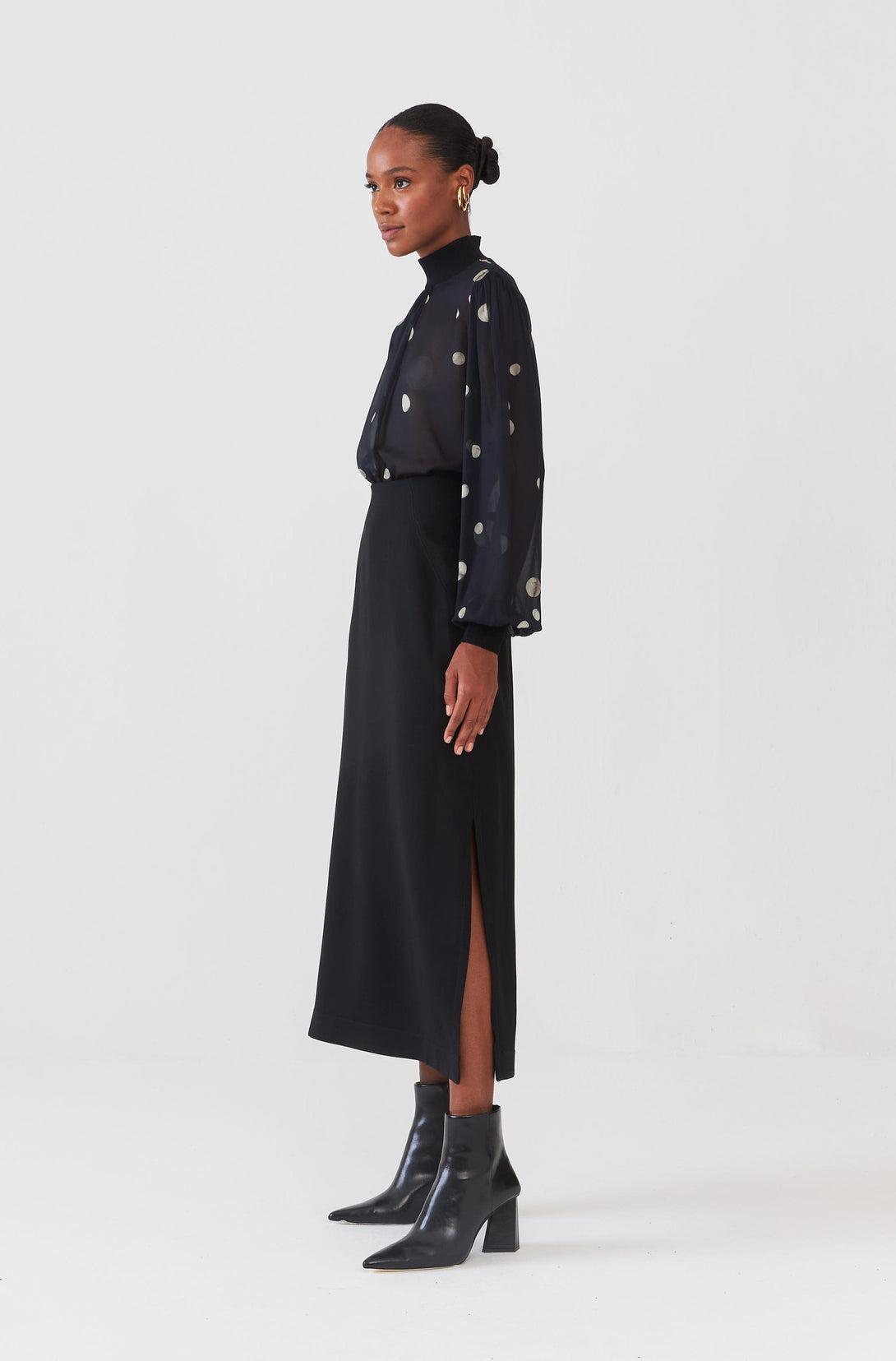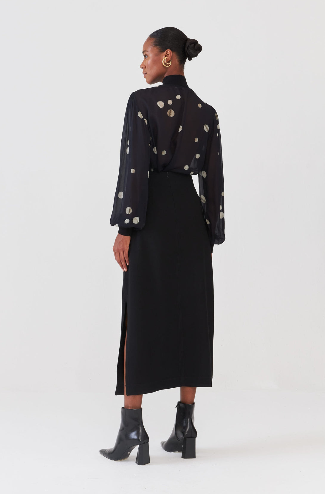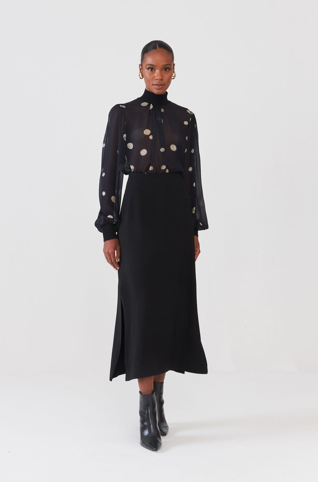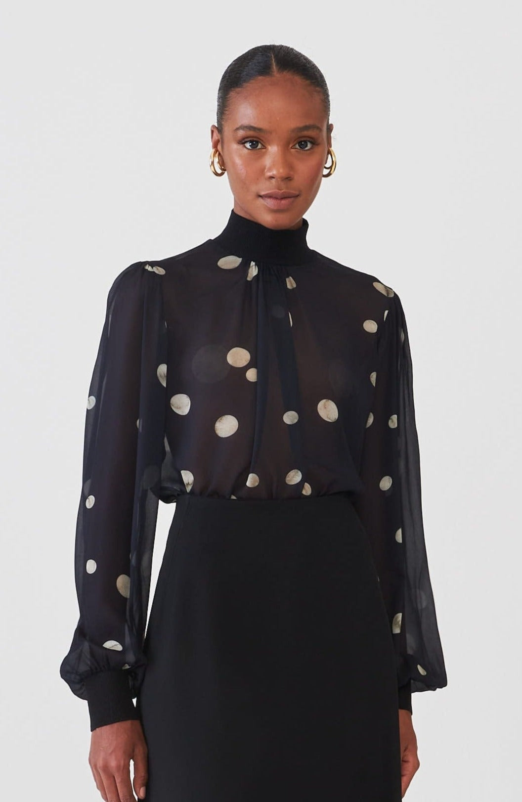 Blusa Estampada Manga Longa Transparência Poa Preto