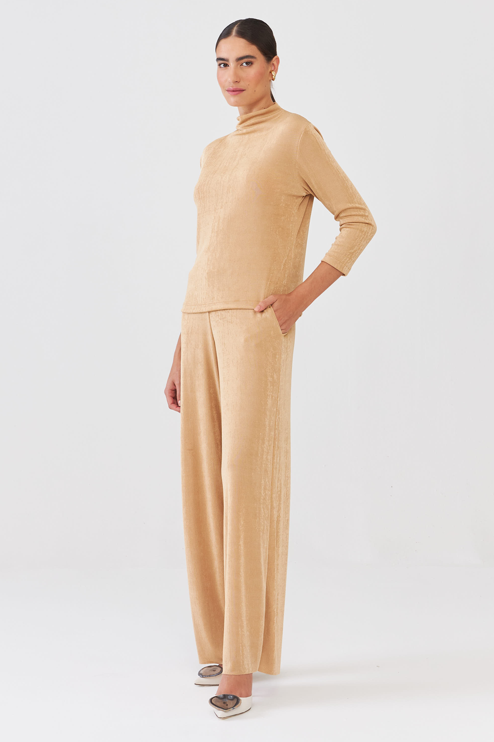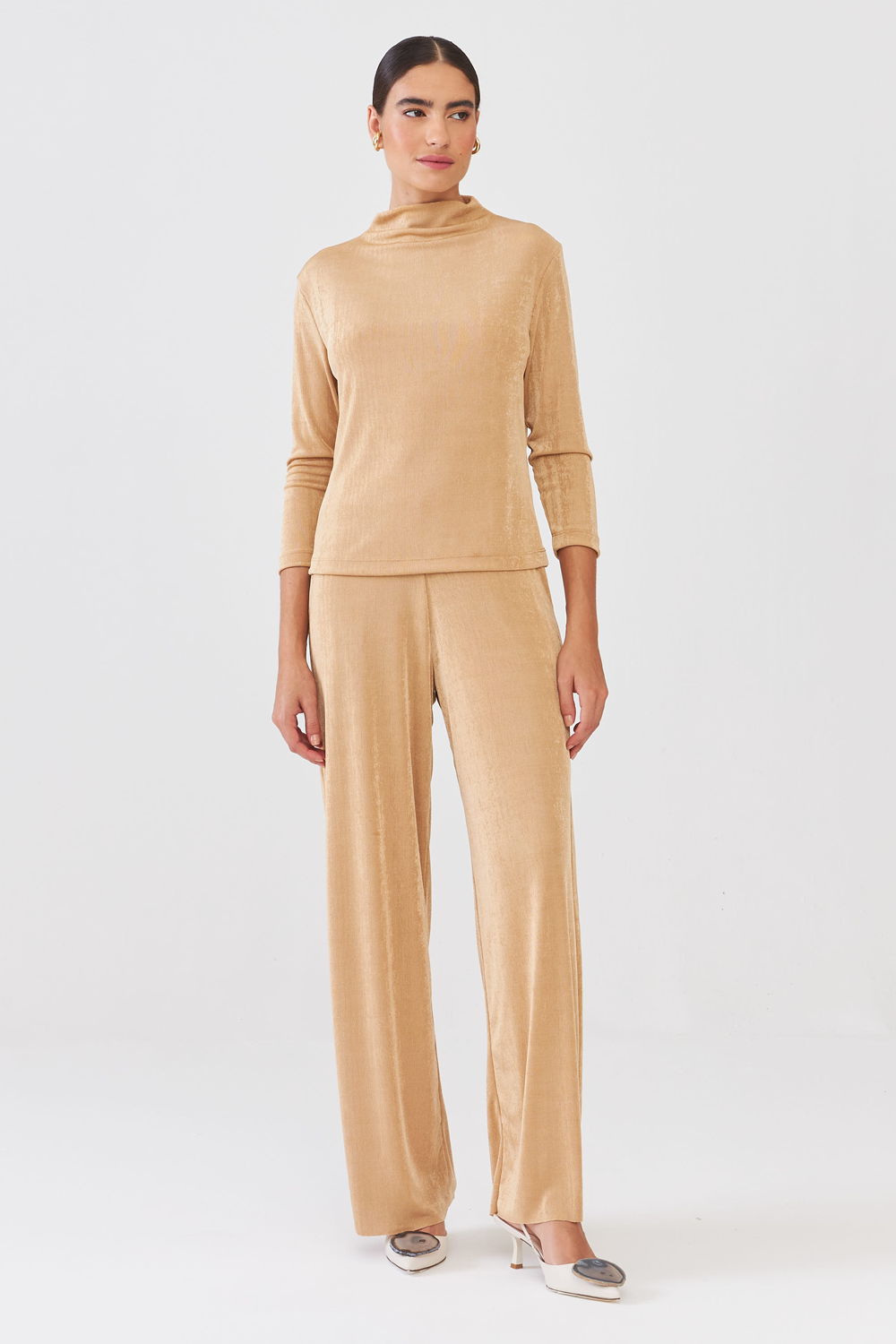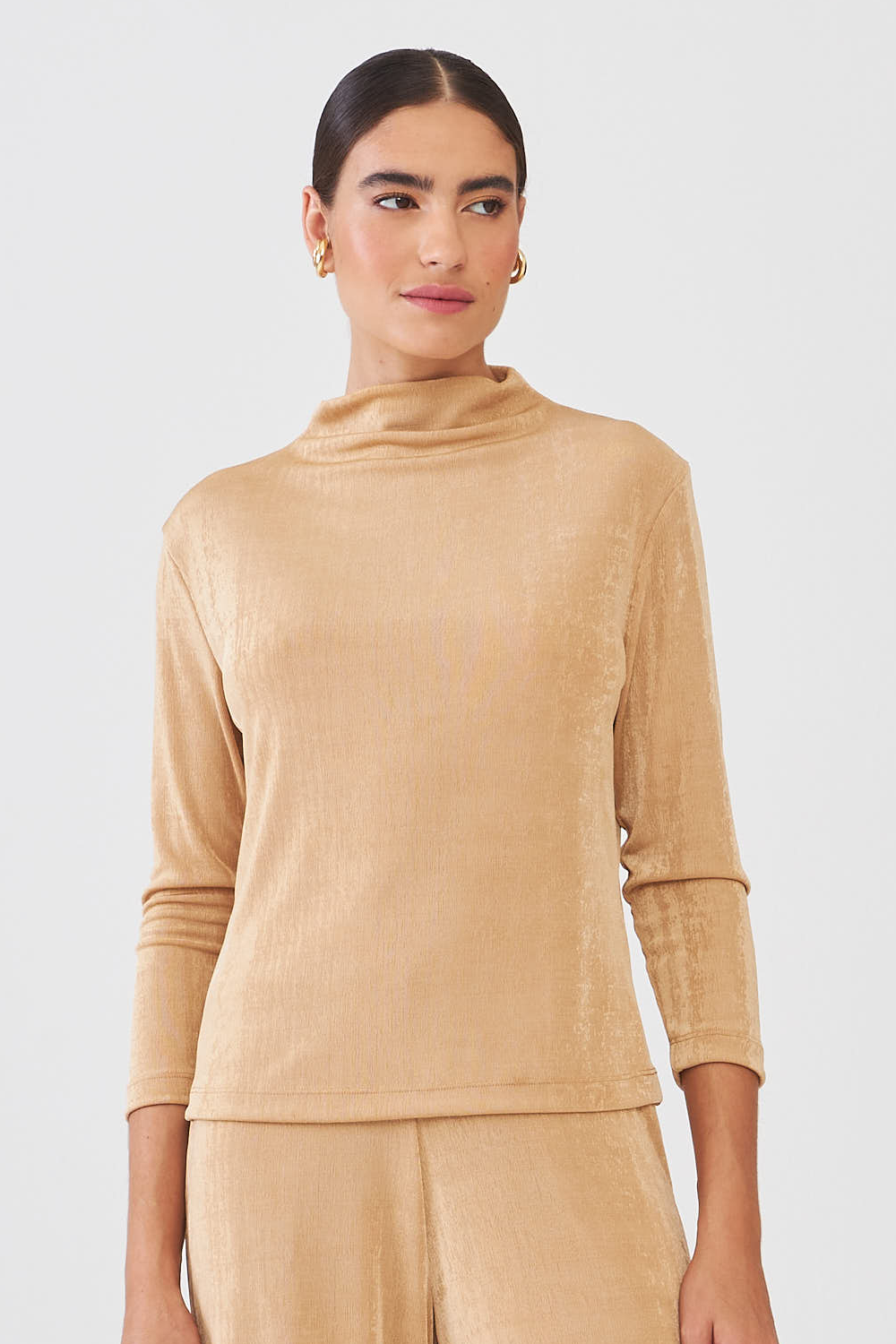 A Blusa Gola Alta Em Malha Jersey é feita com em malha que proporciona conforto e um toque de brilho para o seu look. Com uma gola alta elegante, é perfeita para o inverno. Além disso, possui um que valoriza o corpo. Adicione um toque sofisticado ao seu guarda-roupa com essa blusa versátil.