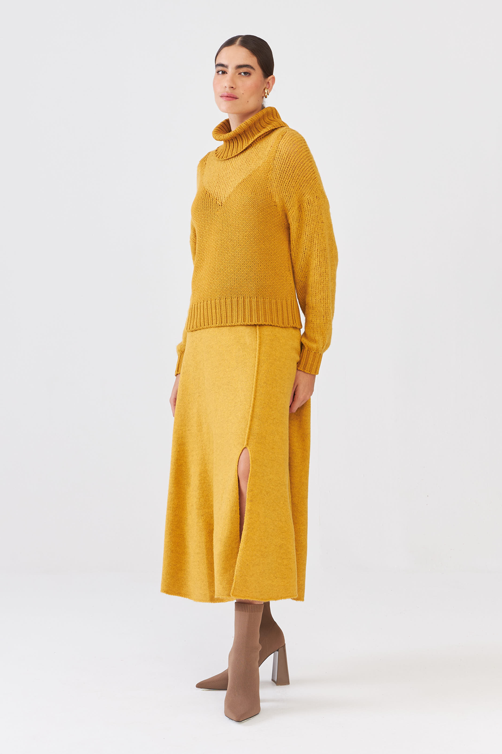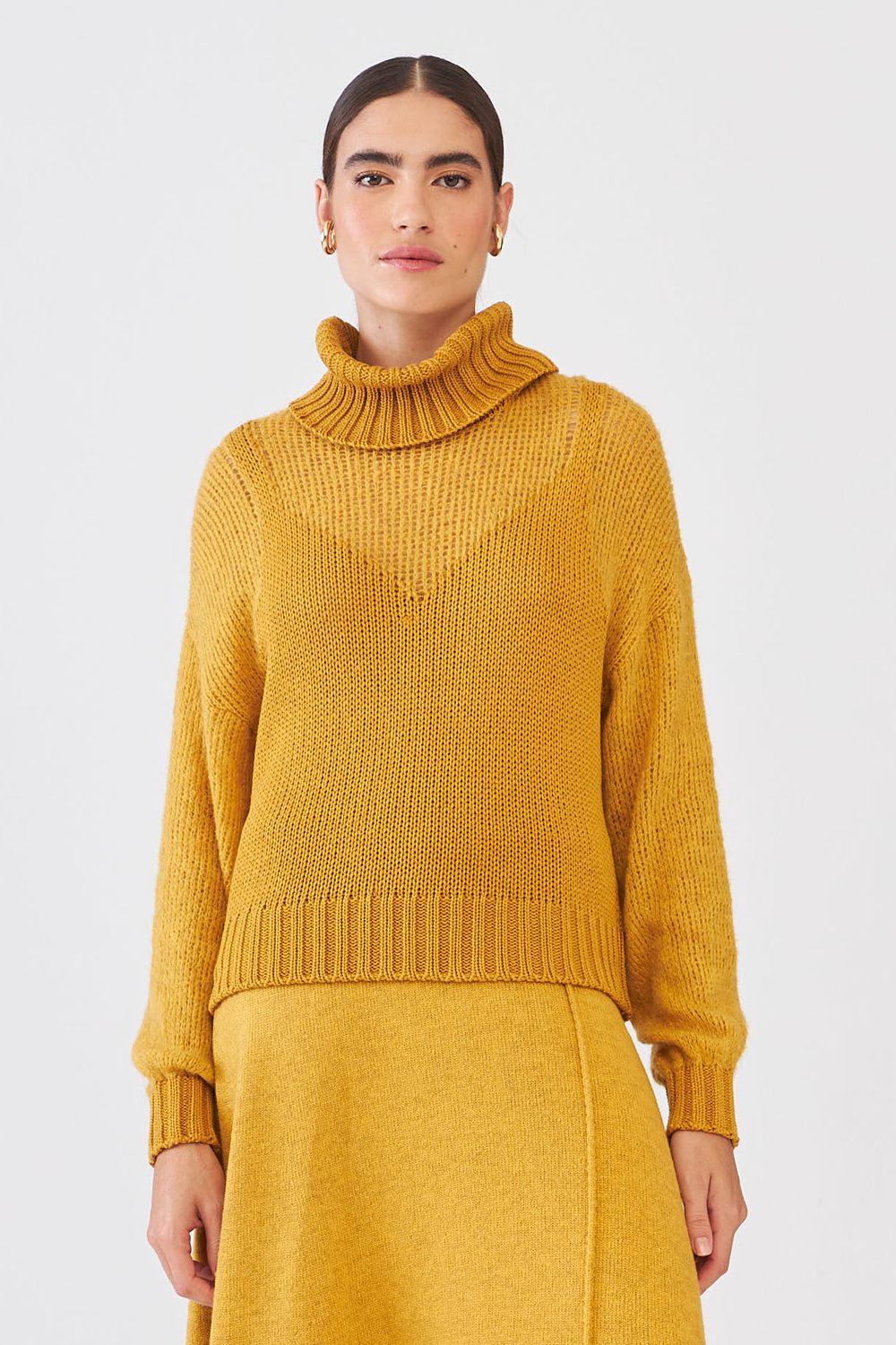 Uma blusa que combina estilo e conforto, feita em tricot e com gola alta para os dias mais frios. O design elegante tornam essa peça versátil e ideal para qualquer ocasião.