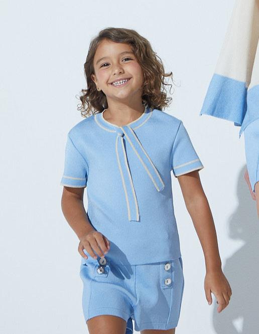 Blusa Infantil Com Laço Em Tricot Navy Azul