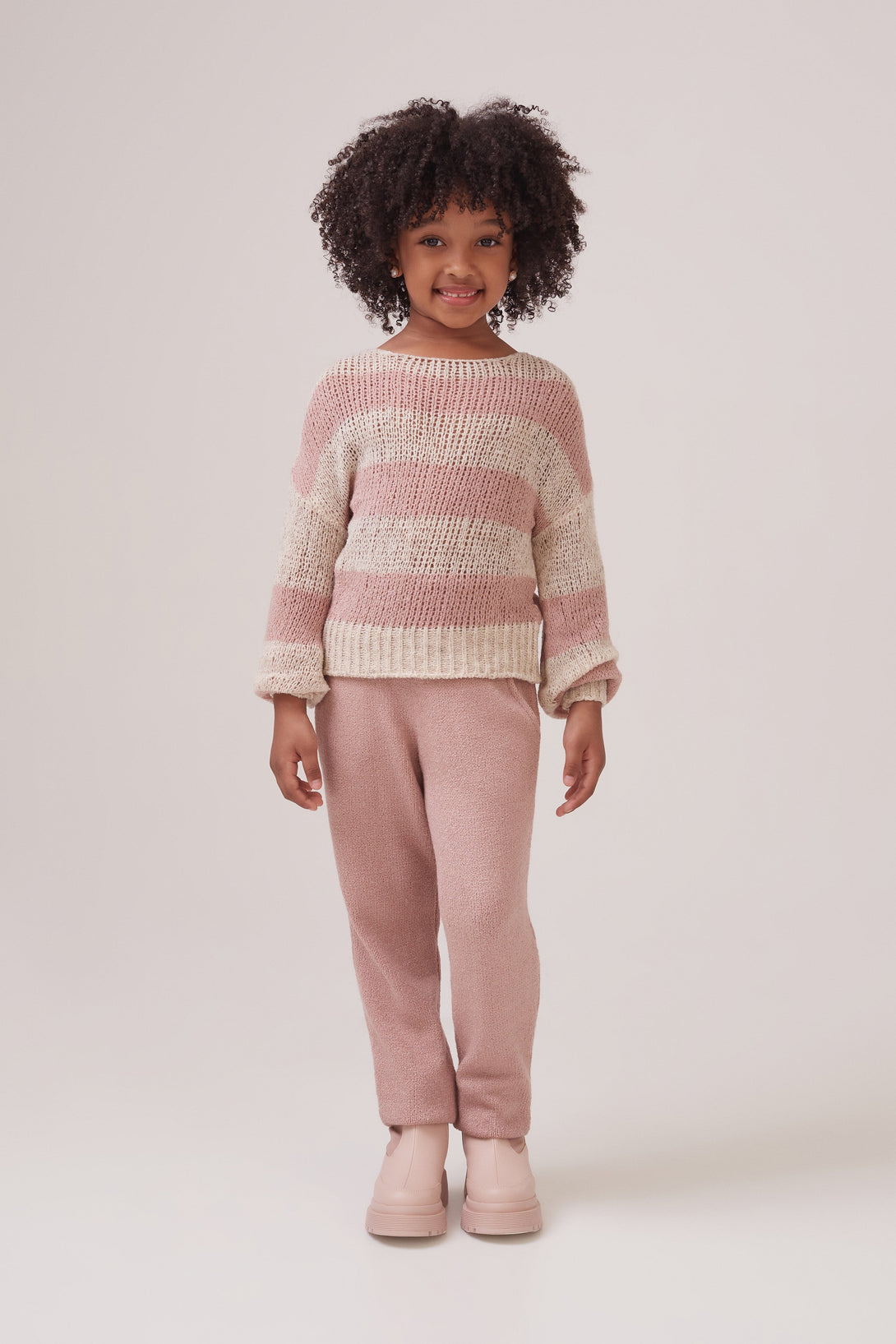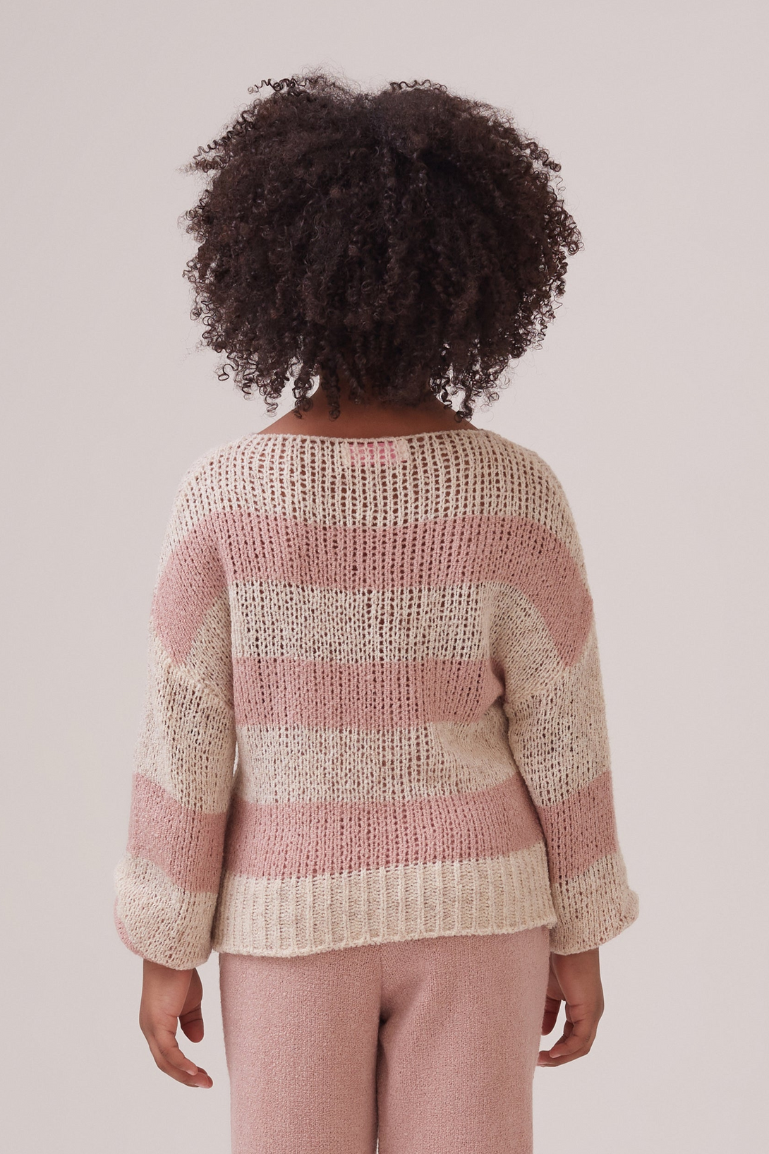 Blusa Infantil Decote Canoa Listrada Em Tricot Rosa Retrô