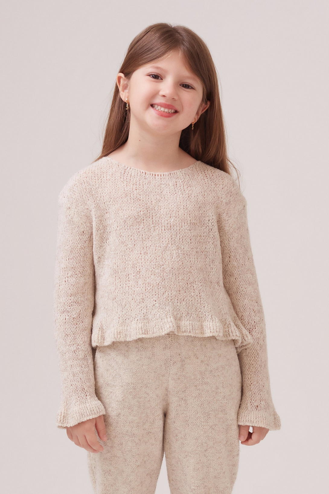 Blusa Infantil Manga Longa Detalhe No Punho Em Tricot Papiro