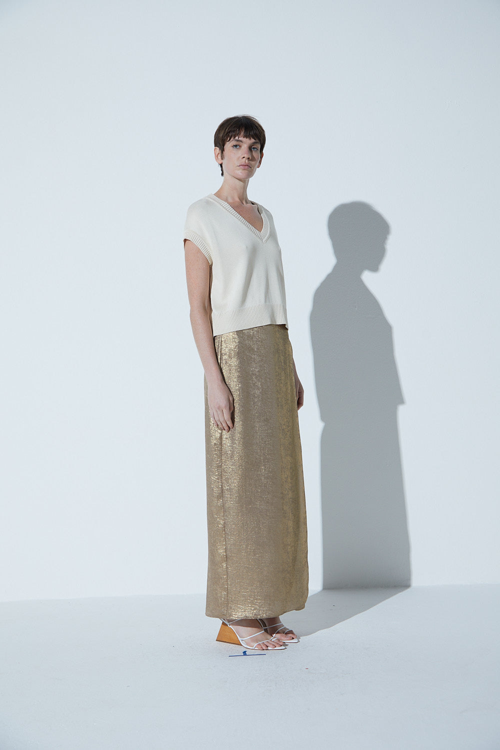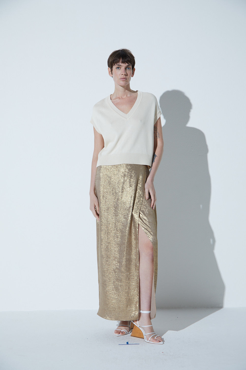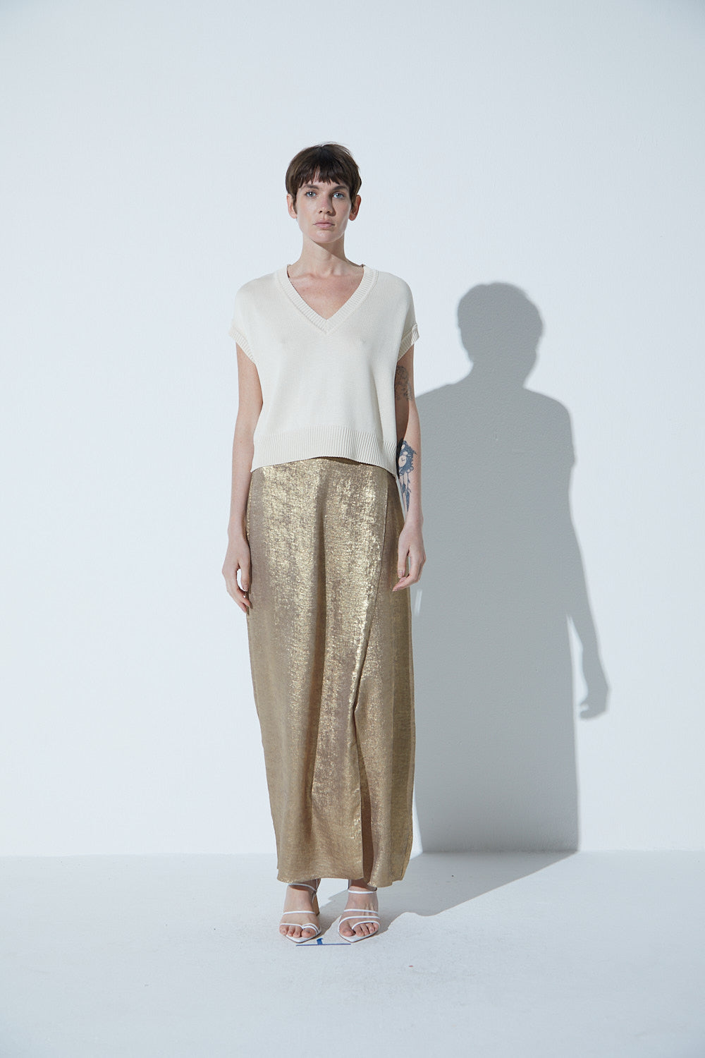 Blusa Lurex Decote V Sem Mangas Em Tricot Ninive
