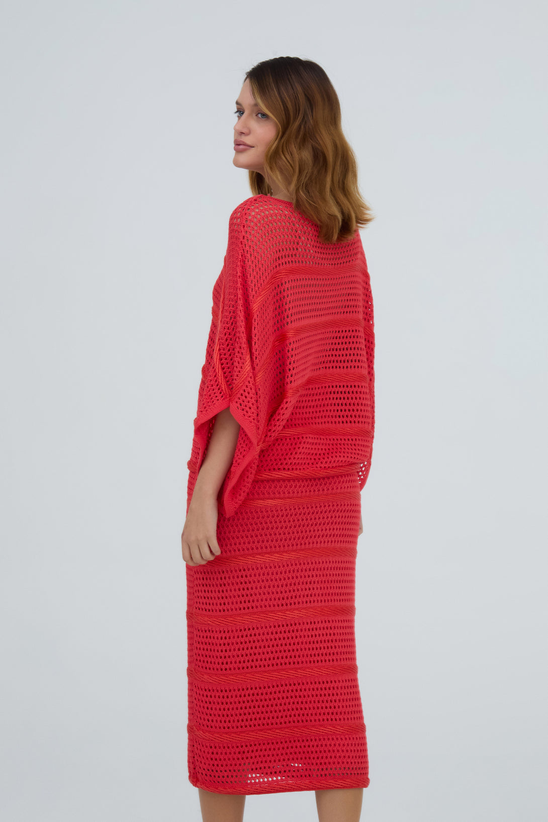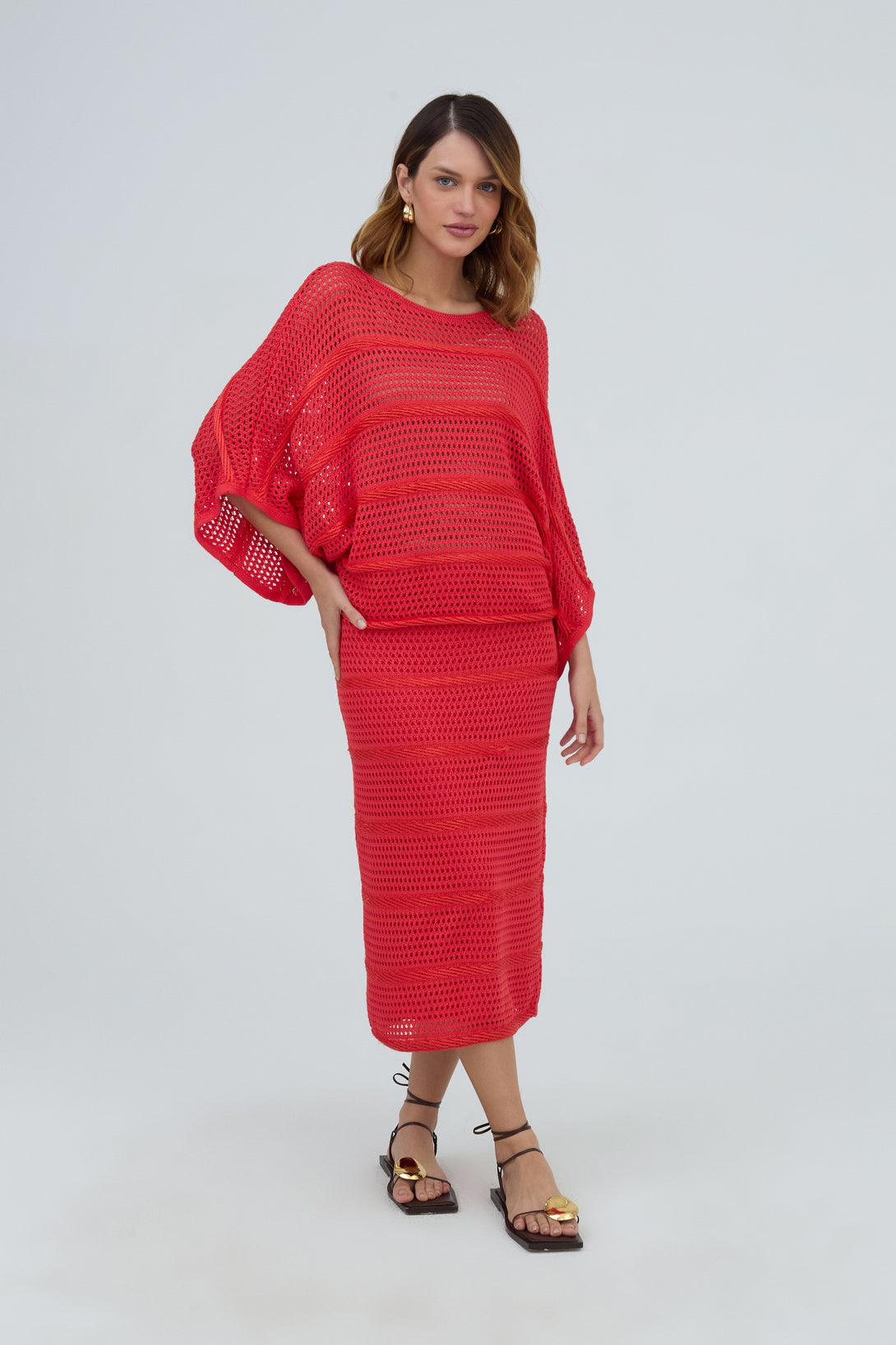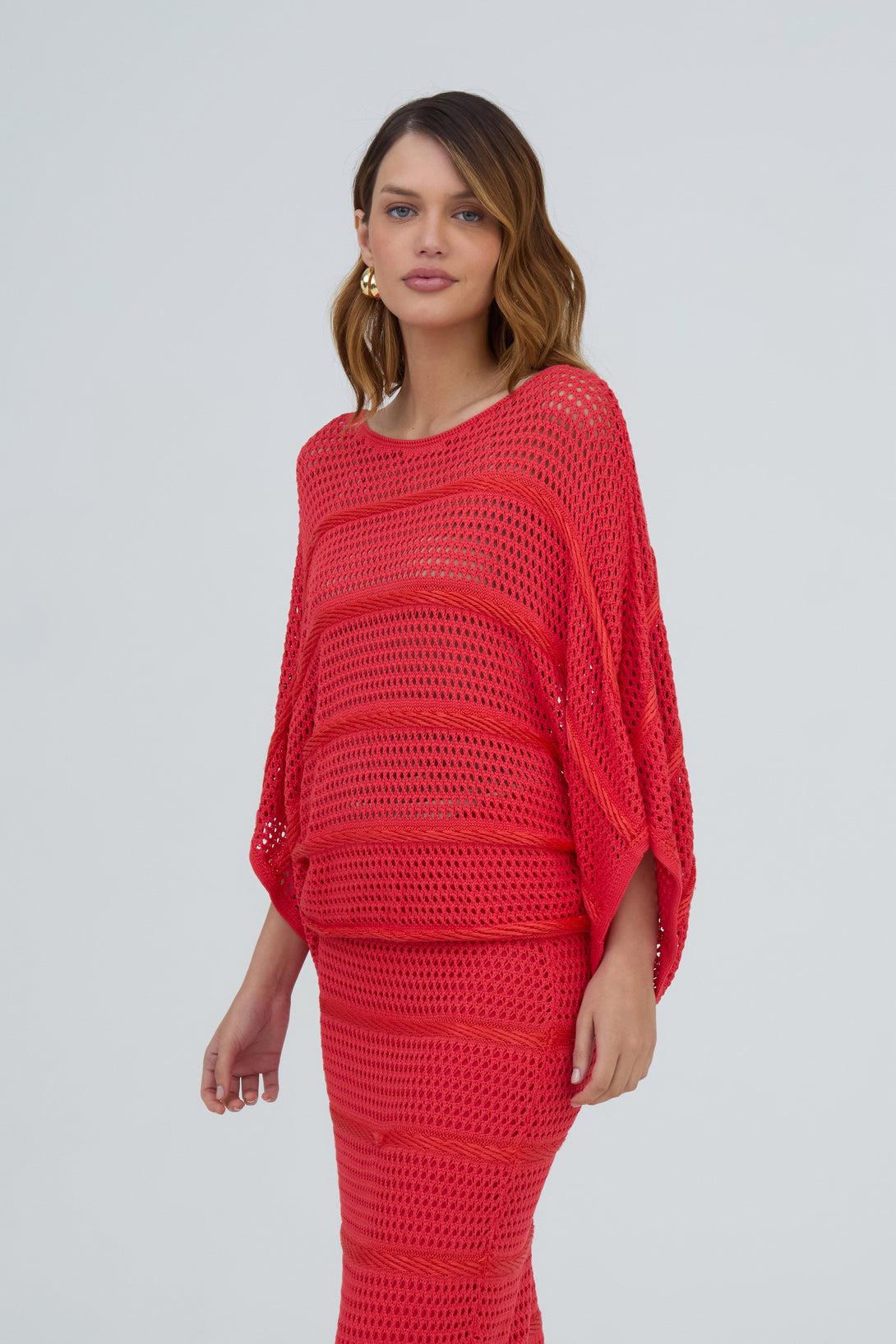Blusa Manga Ampla Detalhe Ponto Corda Em Tricot Vermelho Carmim
