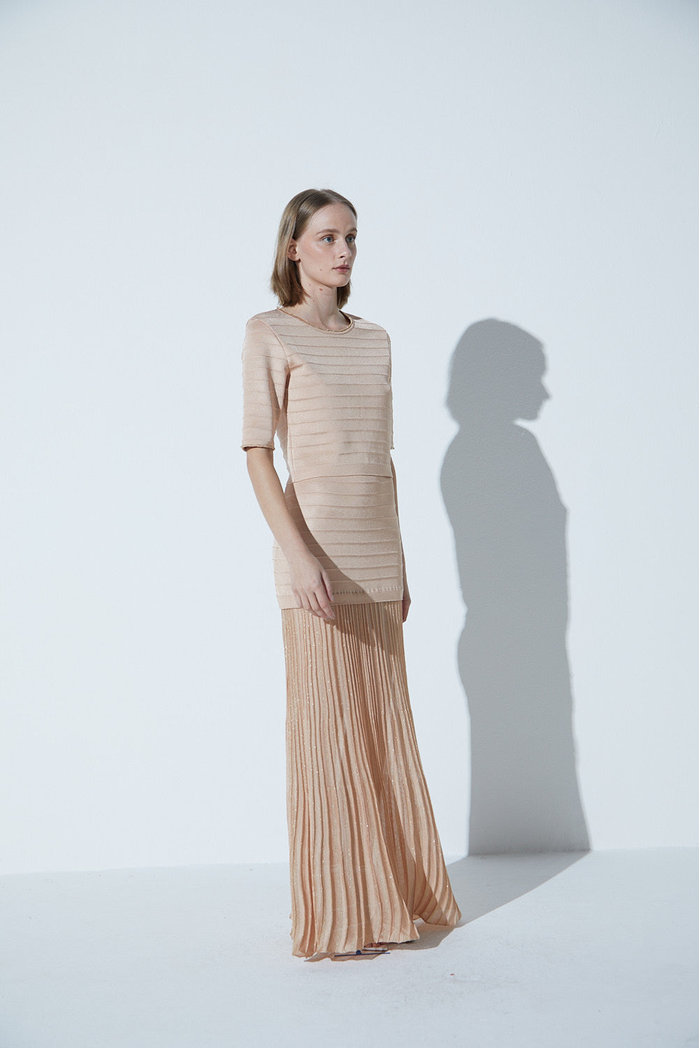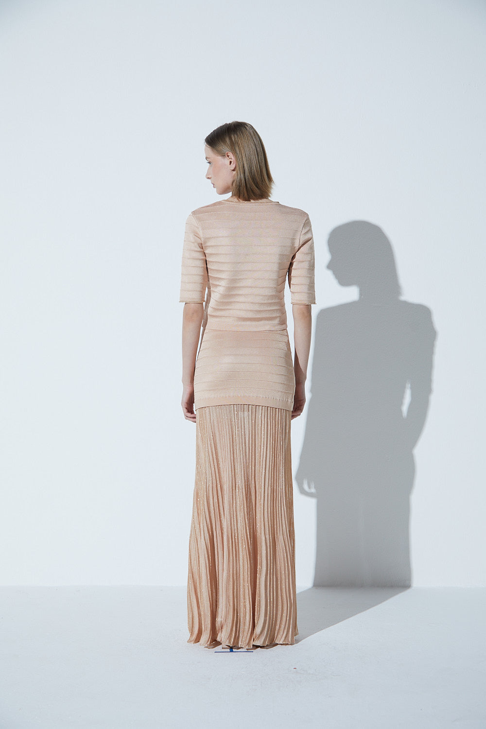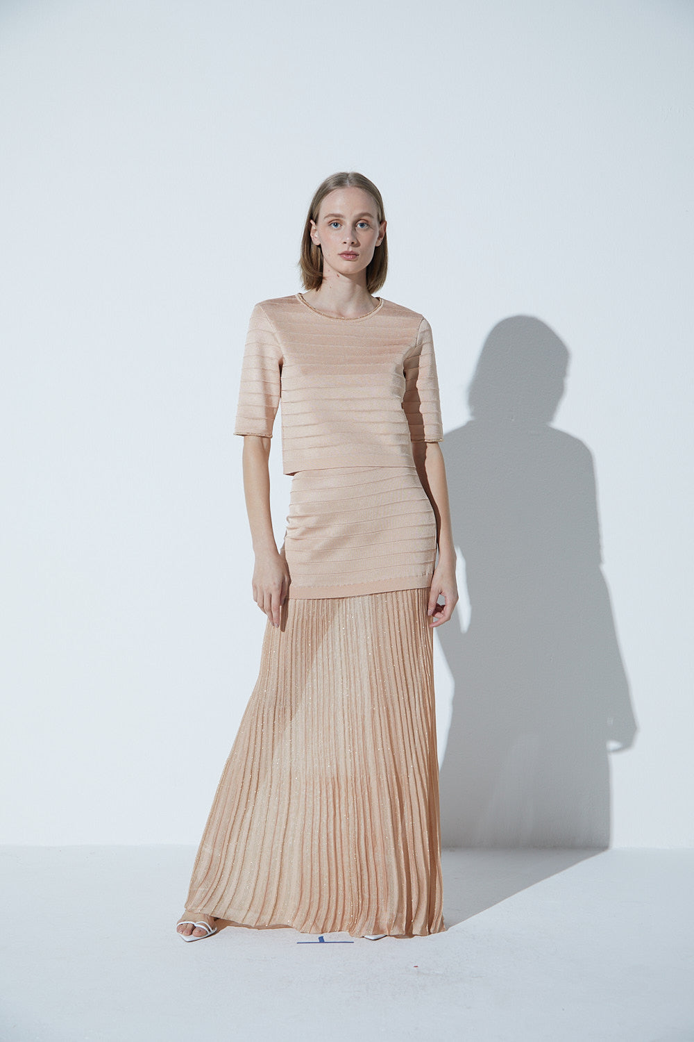 Blusa Manga Curta Em Tricot Nervura Champagne