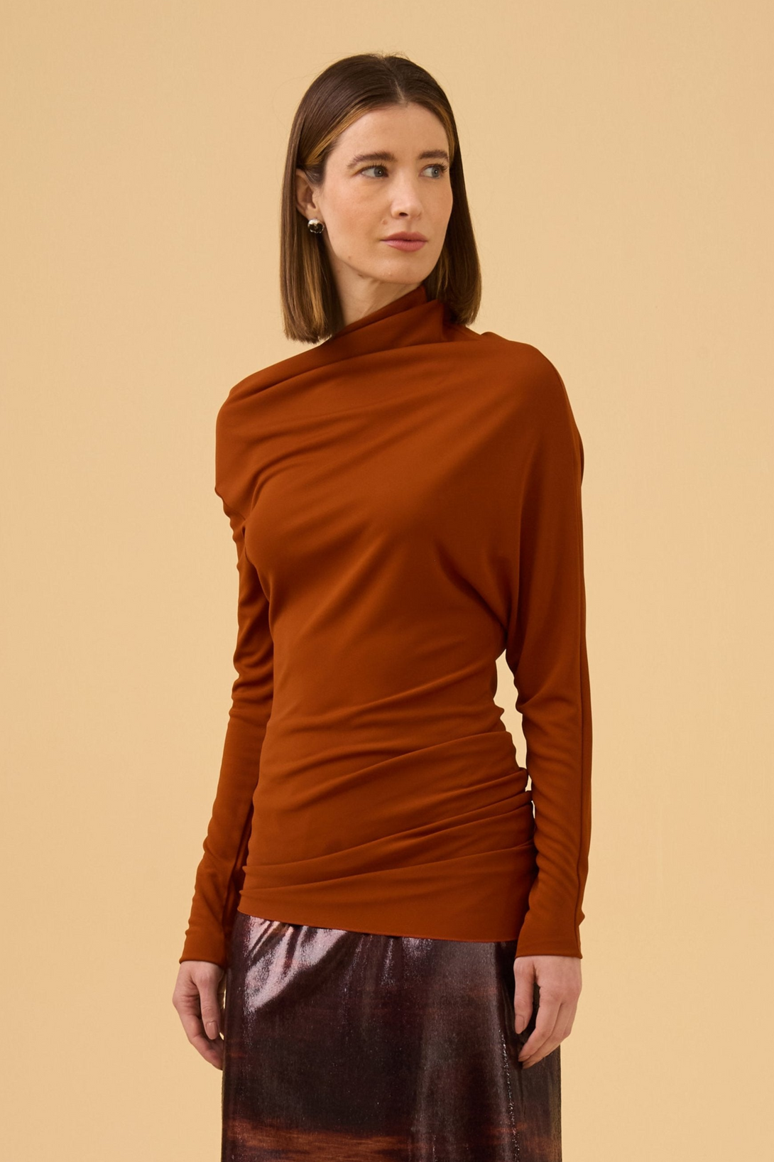 Blusa Manga Longa Decote Assimétrico Em Malha Light Brown