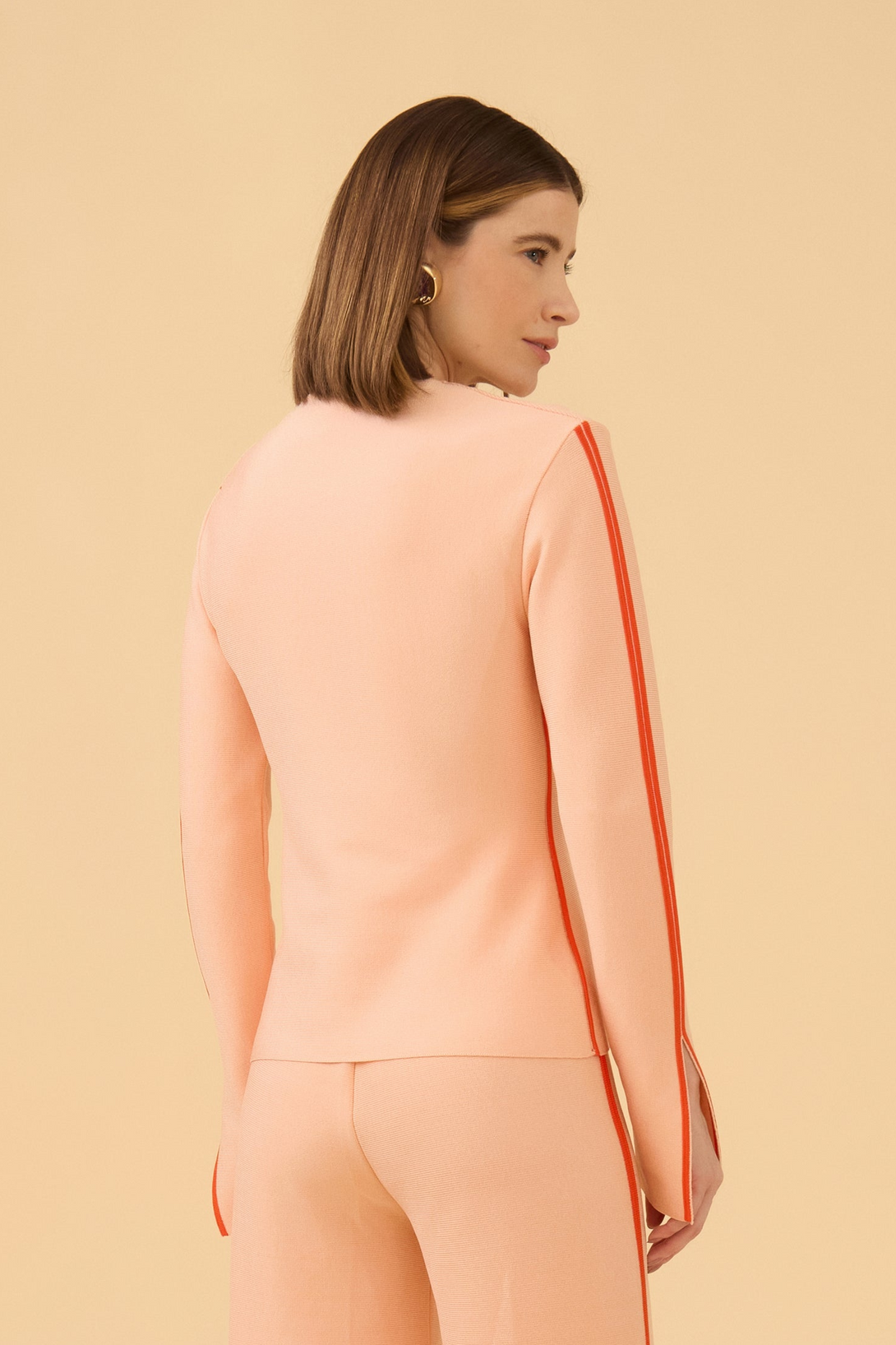 Blusa Manga Longa Detalhe Bicolor Em Tricot Comb. Light Peach