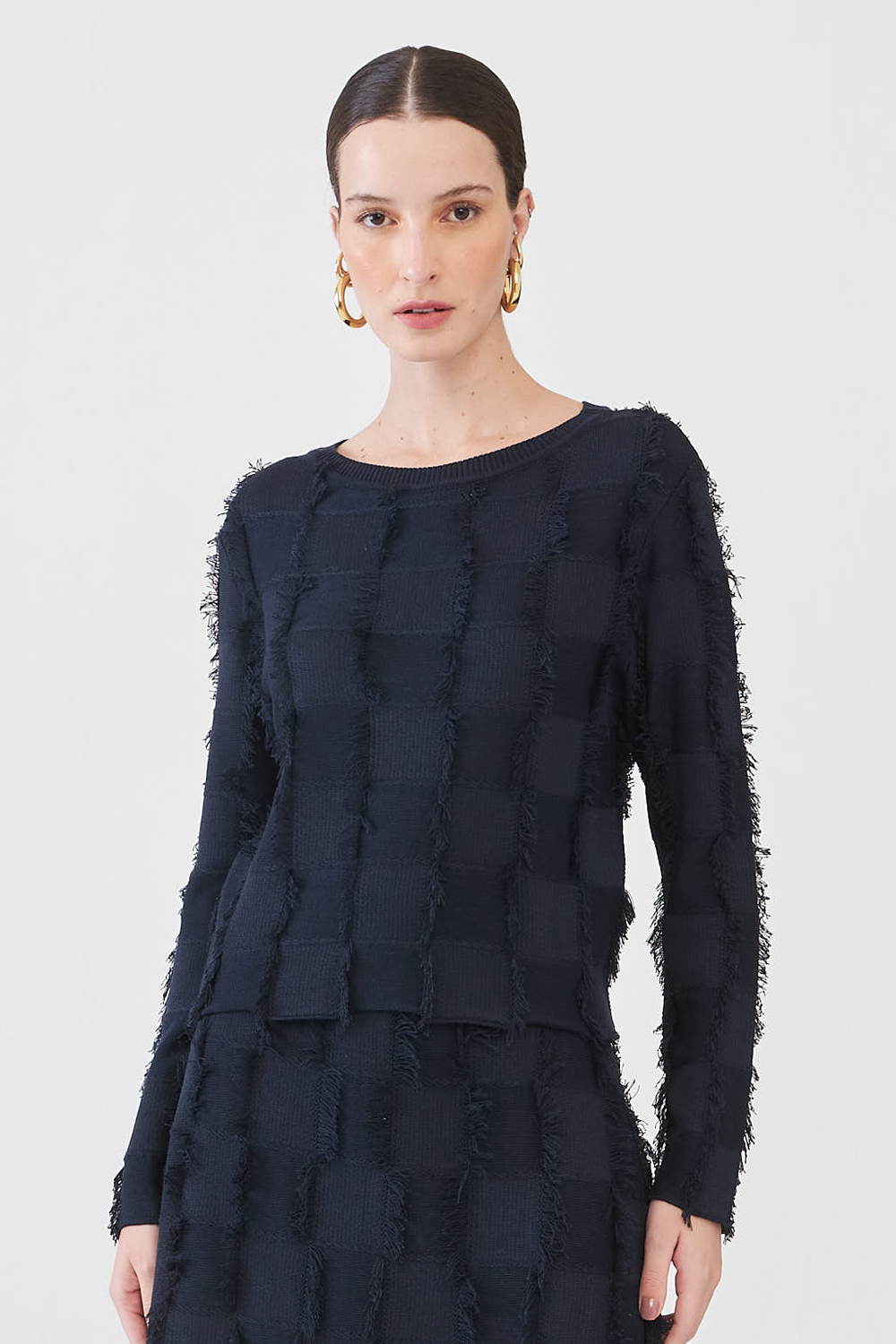 Blusa Manga Longa Em Tricot Detalhe Franjas