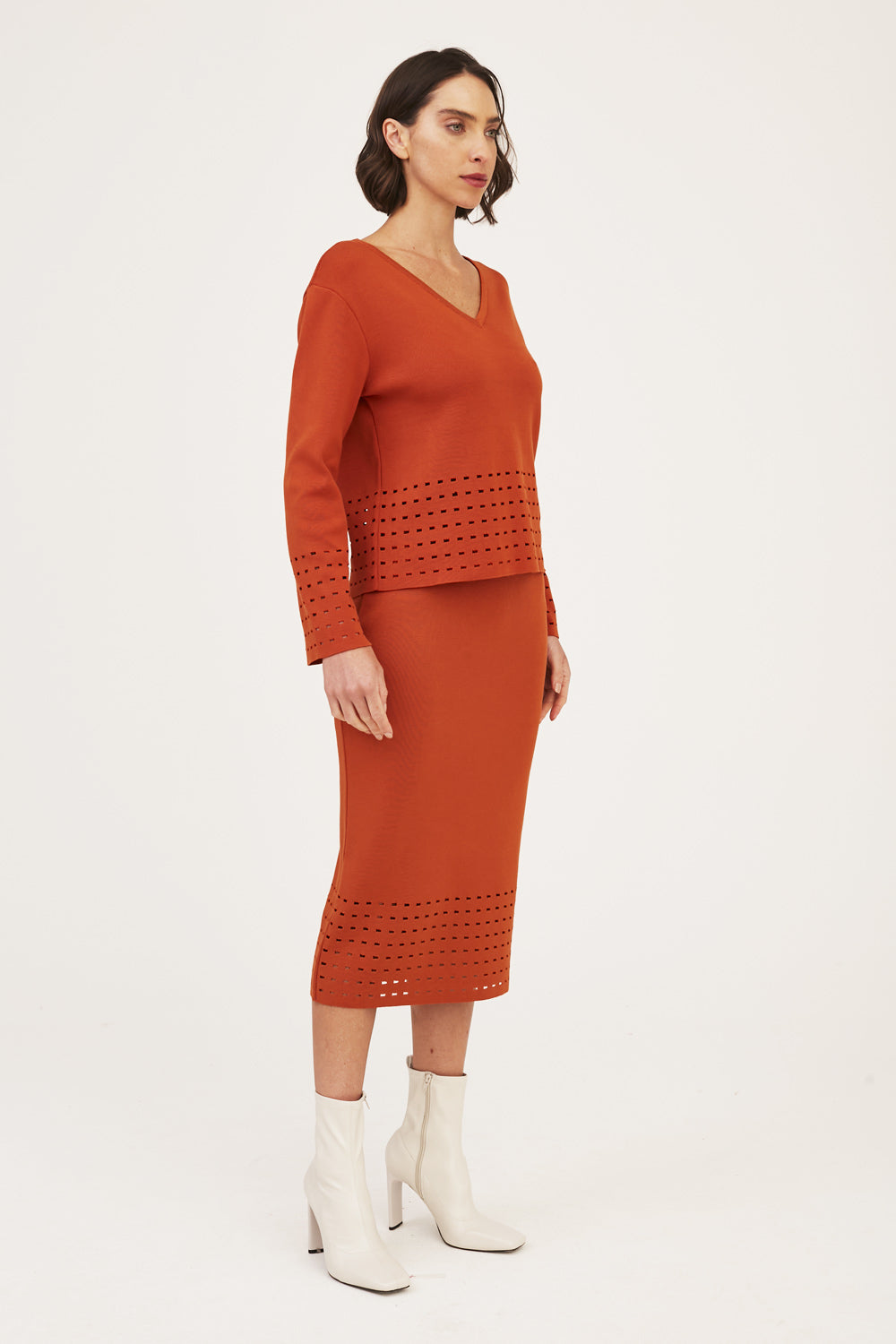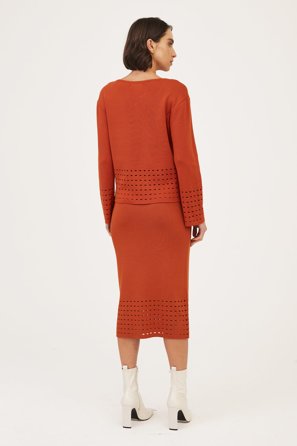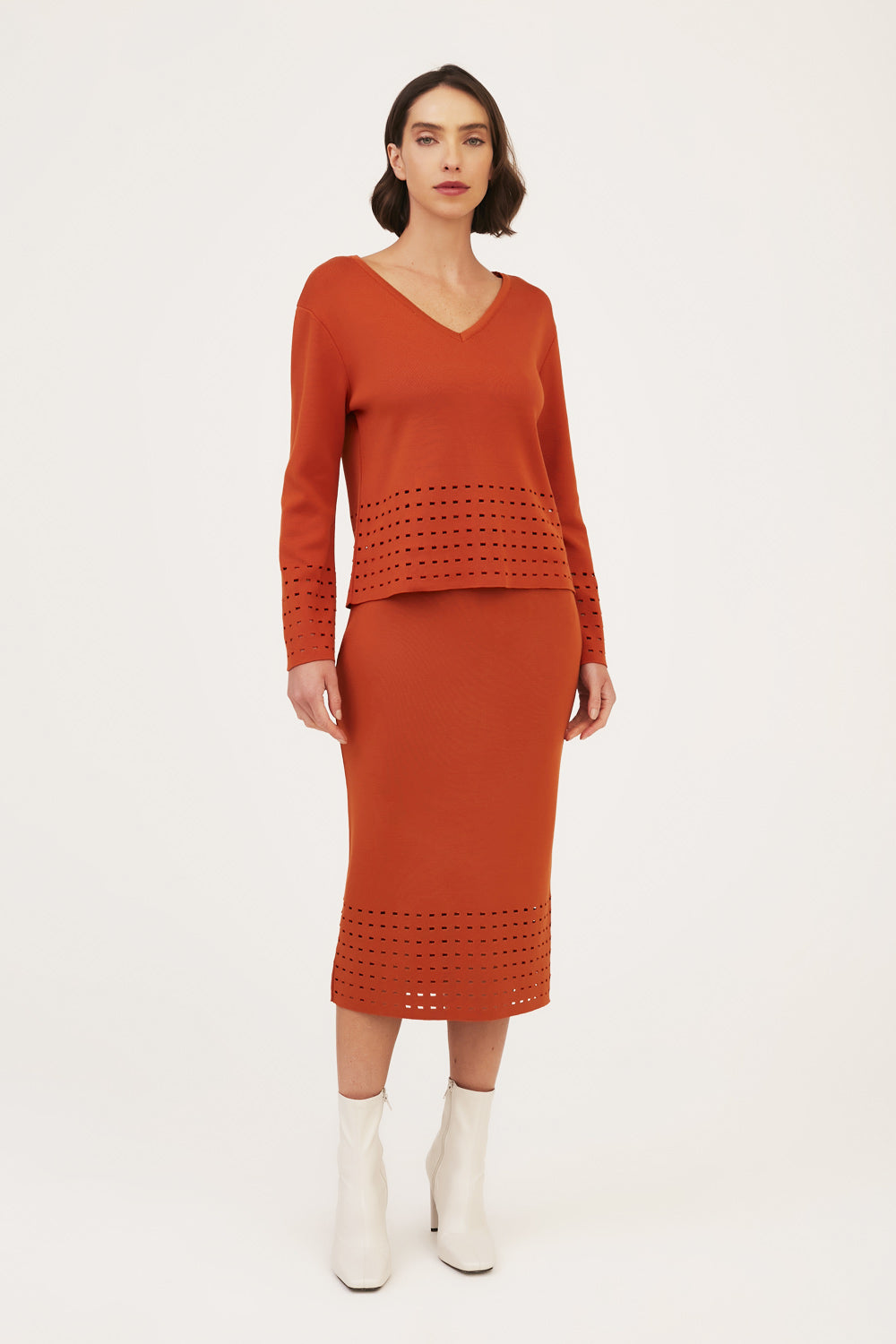 Blusa Manga Longa Em Tricot Detalhes Vazados Carrot