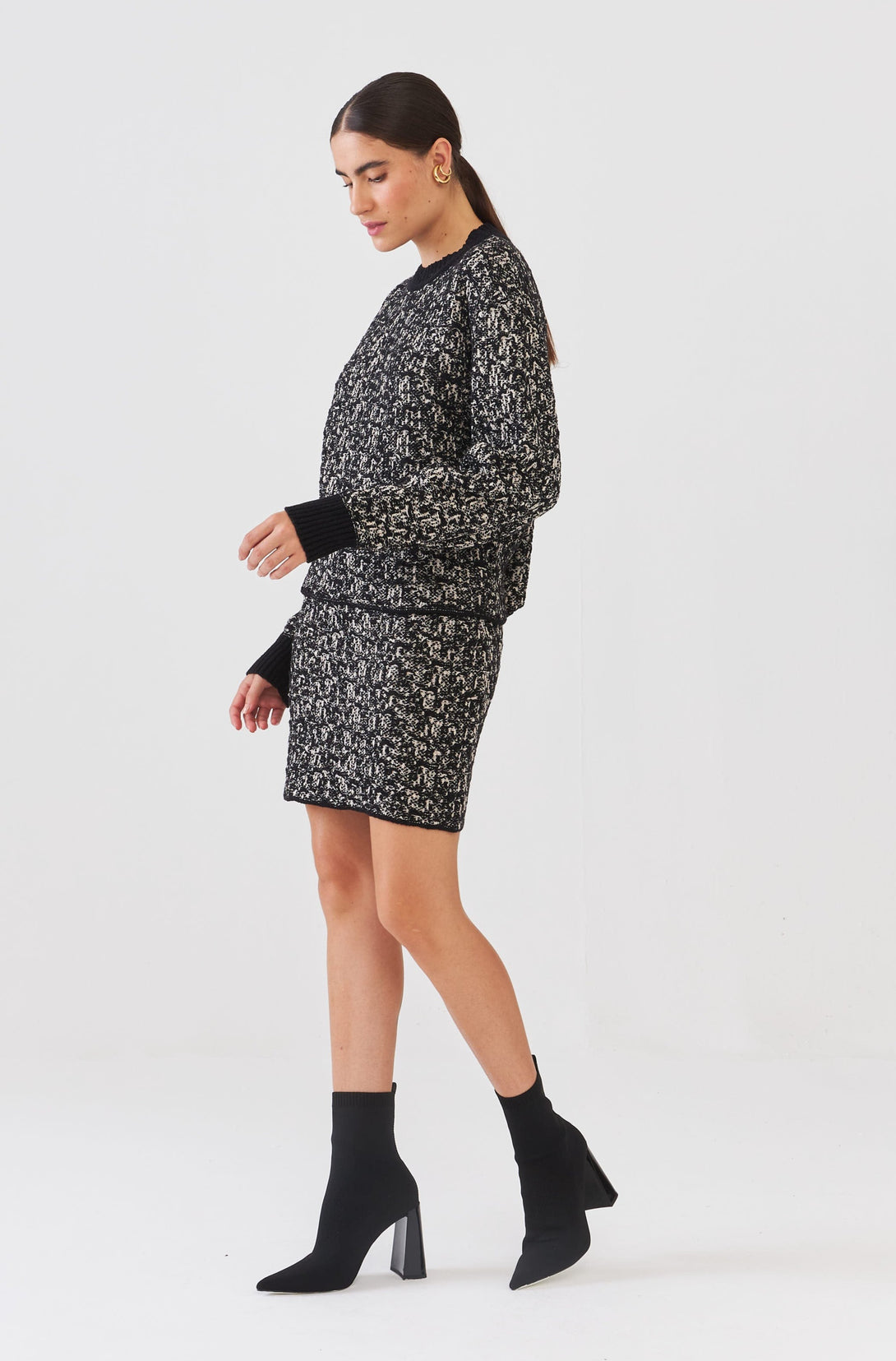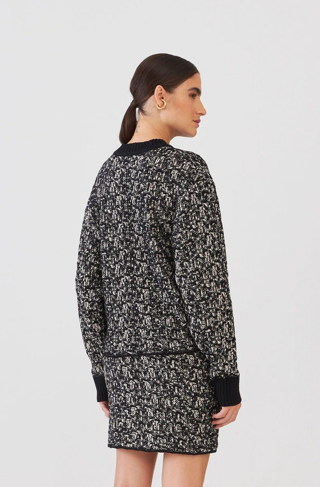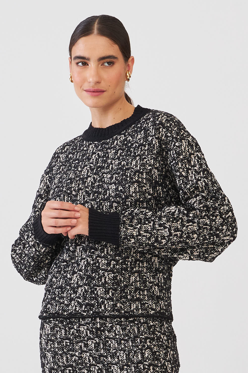Blusa Manga Longa Em Tricot Tweed Tweed Preto