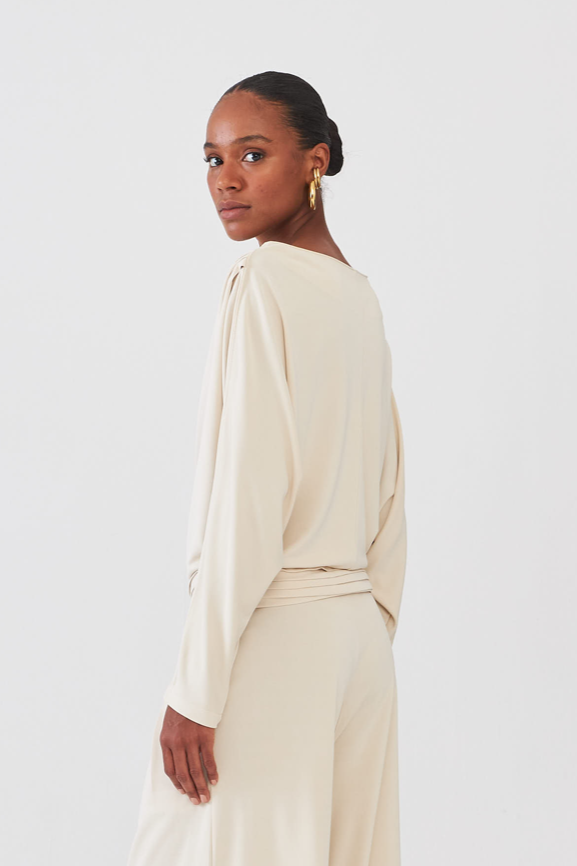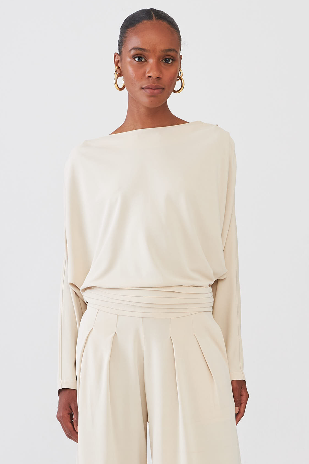 Blusa Manga Morcego Detalhes Pregas Em Malha
