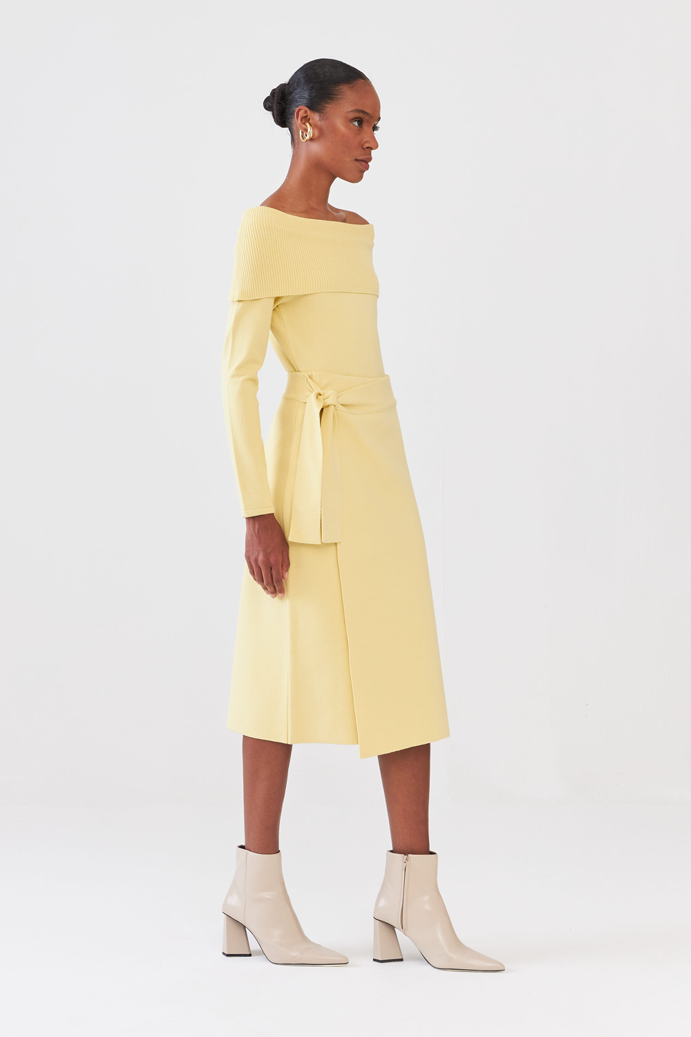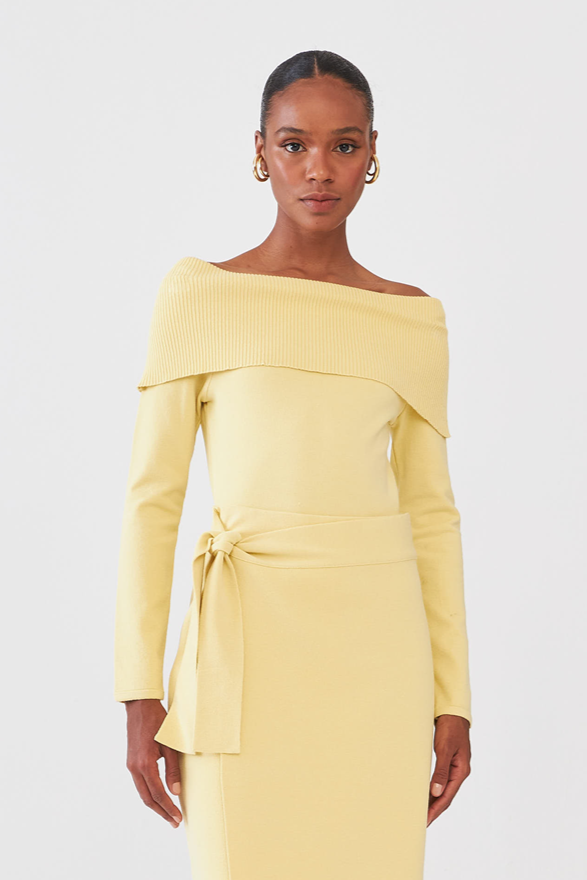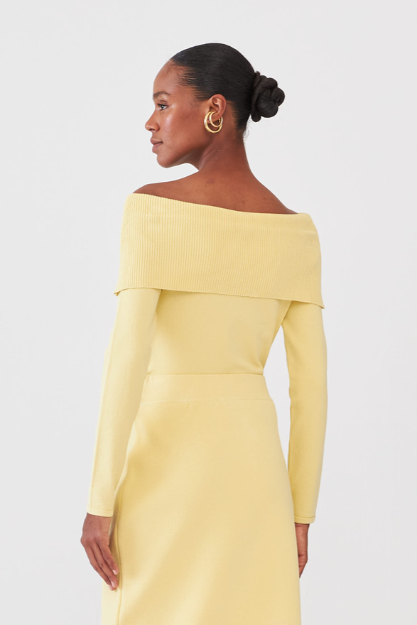 Blusa Ombro A Ombro Em Tricot Amarelo Suave