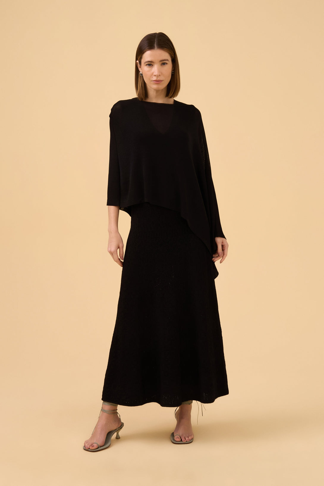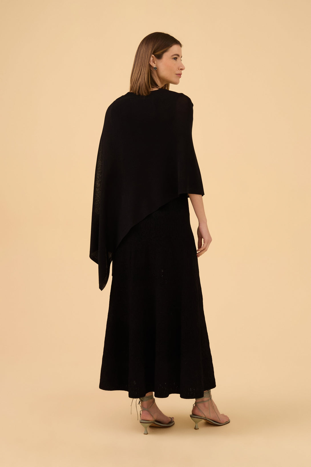 Blusa Poncho Detalhe Assimetria Em Tricot Preto