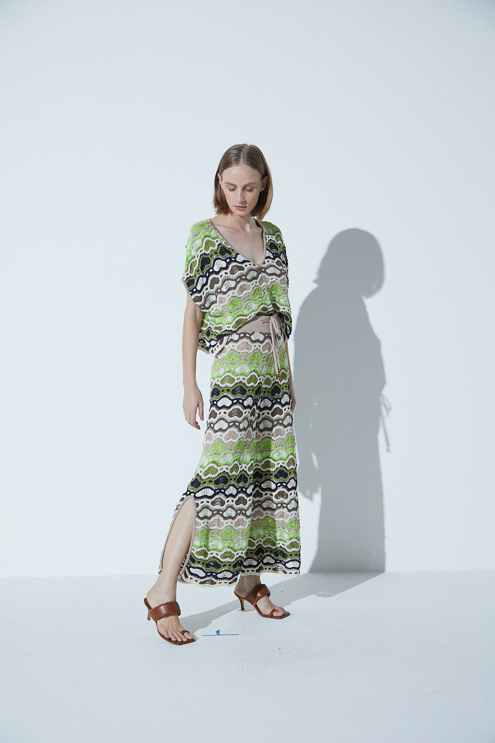 A Blusa Box Mix Tropical Neutro é feita com tricot, com detalhes em ponto rendado multicolorido que captam a efervescência do movimento tropicalista. Seu design leve e confortável é ideal para quem procura um look moderno e fresco. Possui shape solto e decote V que alonga o colo feminino.