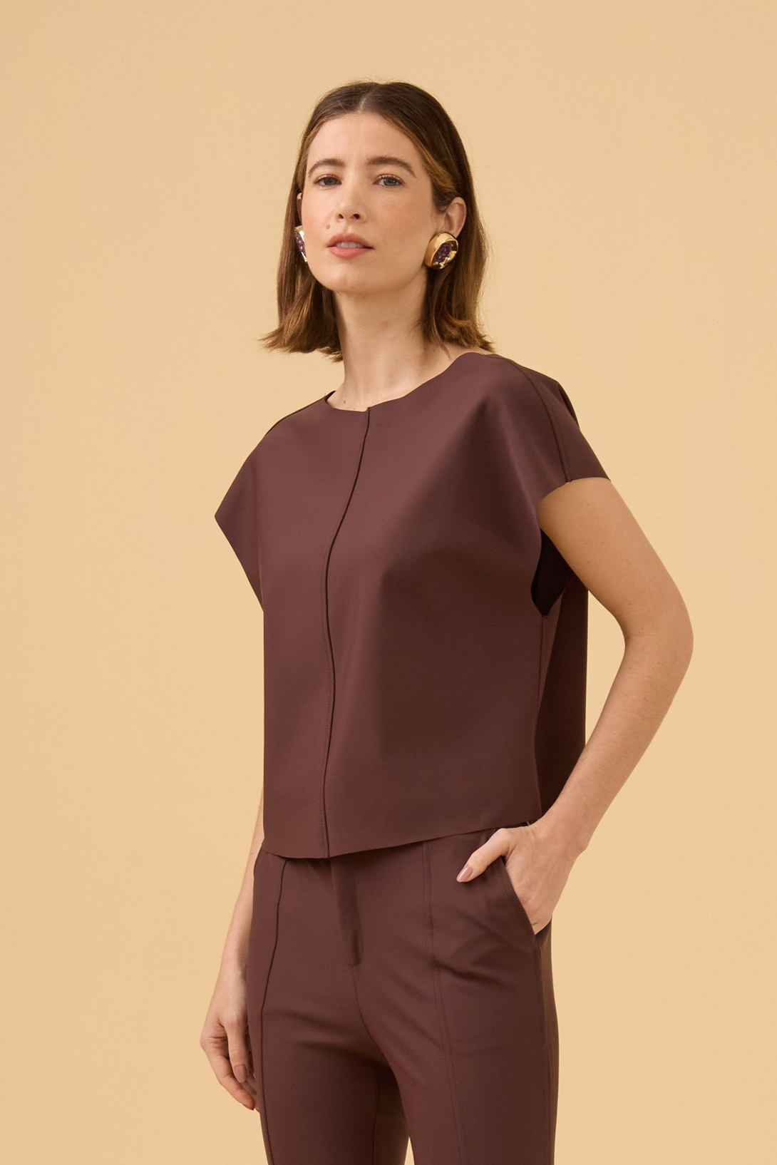 Blusa Sem Manga Em Malha Dark Brown Ii