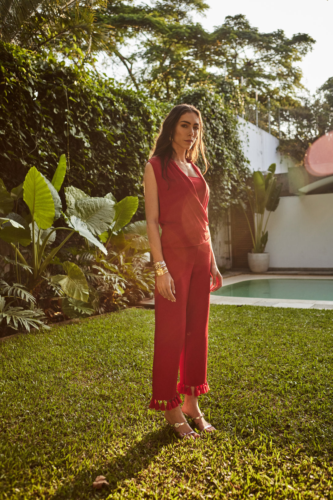 OUTRAS CORES:: Blusa Torção Em Tricot Tomate