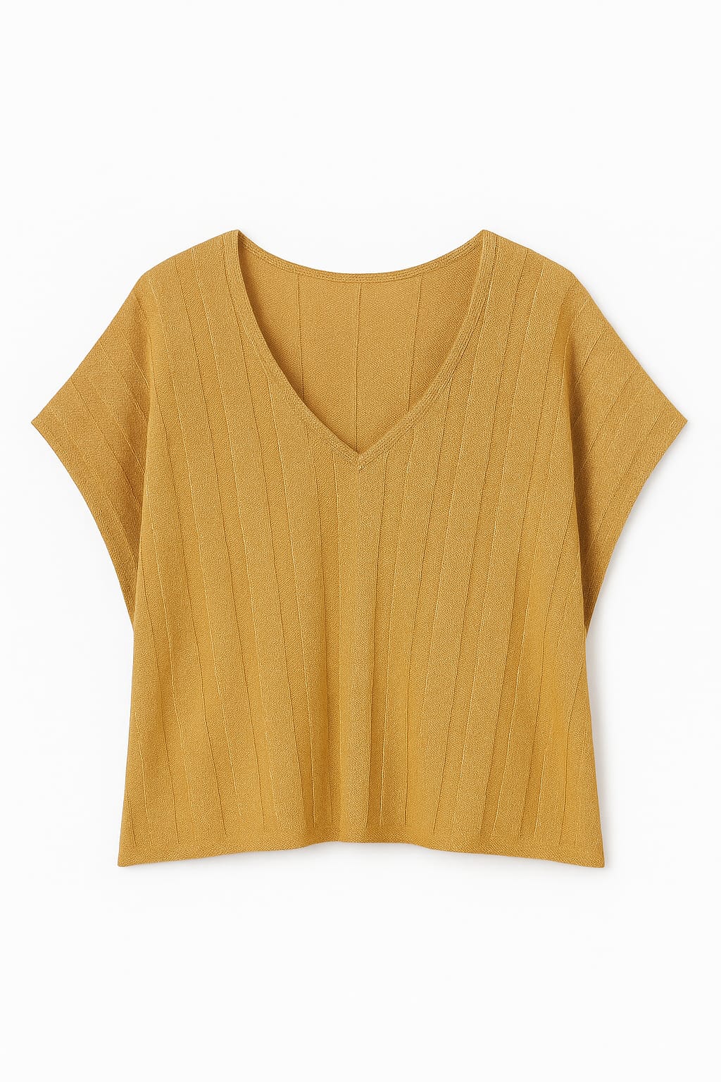 Blusa Tricot Ampla Ponto Chevron Com Lurex Dourado