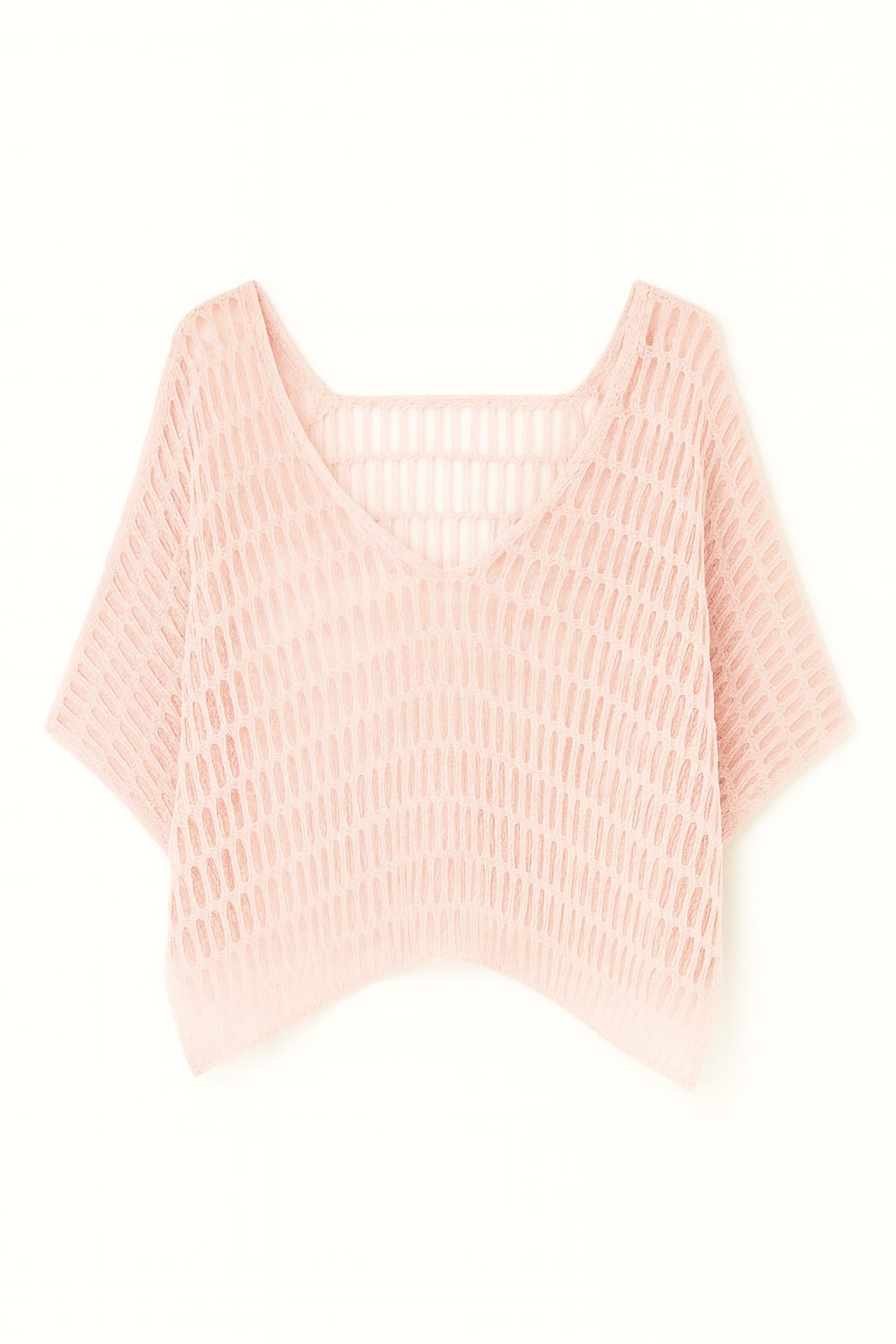 Blusa Tricot Geométrico Mescla Com Transparência Quartzo Rosa