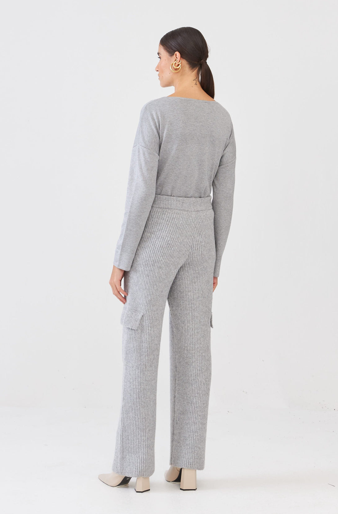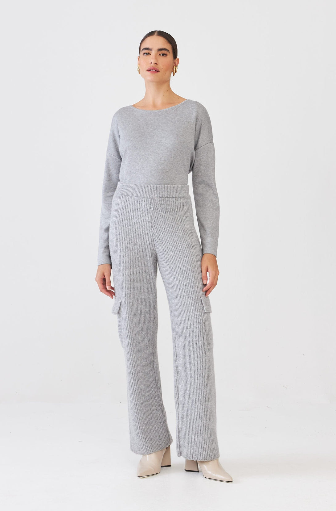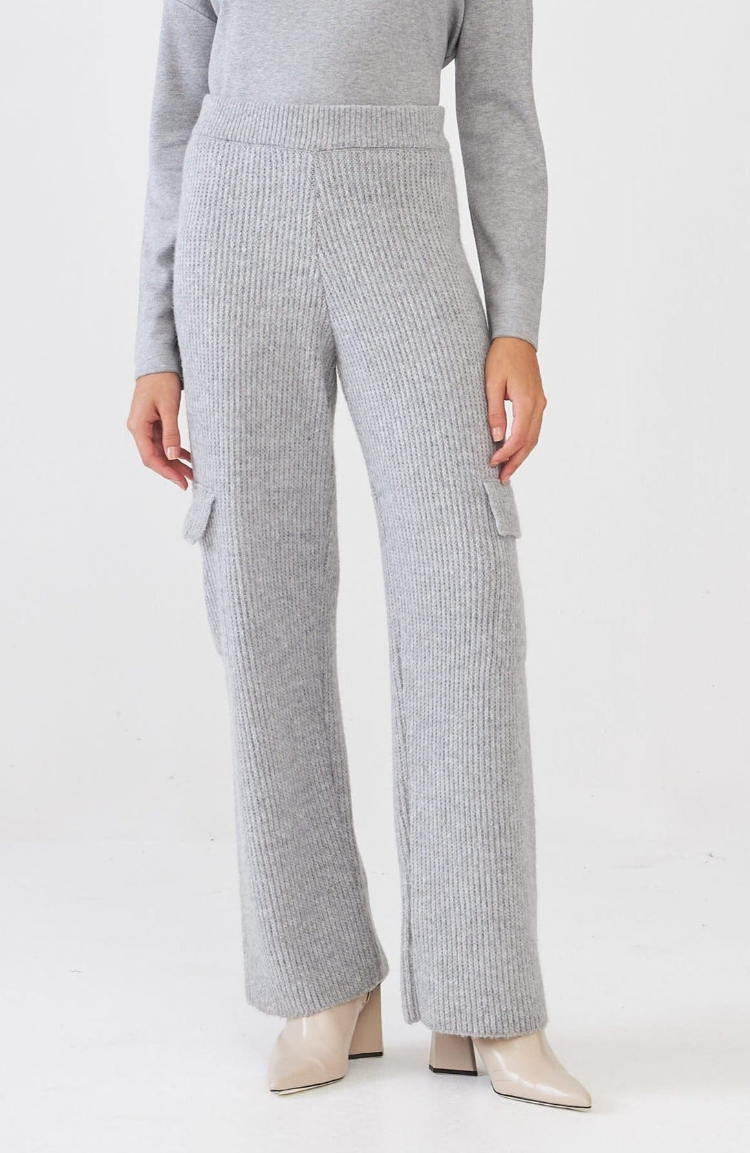 Calça Cargo Ampla Em Tricot Chumbo